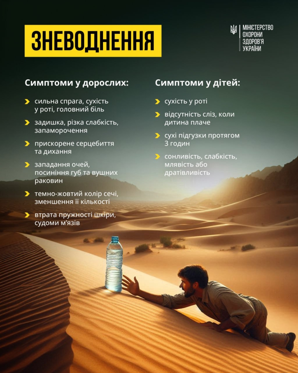 Внаслідок зневоднення організму серце змушене працювати інтенсивніше, а судини мозку звужуються. Це впливає на пам’ять та координацію рухів, самопочуття. Можуть початися судоми та перебої у роботі серця. Сильна дегідратація може призвести до розвитку ниркової недостатності та необхідності лікування у медзакладі, зокрема й у відділеннях інтенсивної терапії.