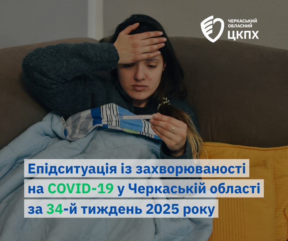 Епідситуація із захворюваності на COVID-19 у Черкаській області за 34-й тиждень 2025 року