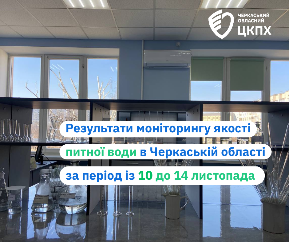 У межах щоденного моніторингу якості та безпечності питної води ДУ «Черкаський обласний ЦКПХ МОЗ України» за період із 10 до 14 листопада 2025 року із джерел та мереж централізованого водопостачання відібрано та досліджено 124 проби питної води за мікробіологічними показниками та 97 – за санітарно-хімічними.