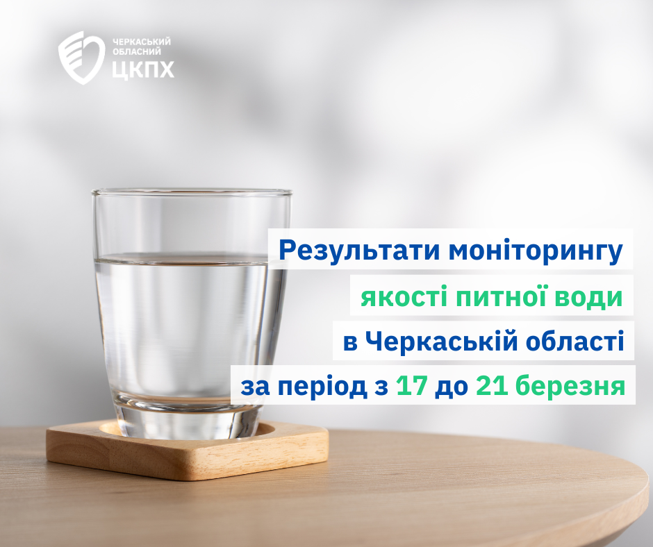 У межах щоденного моніторингу якості та безпечності питної води ДУ «Черкаський ОЦКПХ МОЗ» за період із 17 до 21 березня 2025 року із джерел та мереж централізованого водопостачання відібрано та досліджено 132 проби питної води за мікробіологічними показниками та 111 – за санітарно-хімічними.