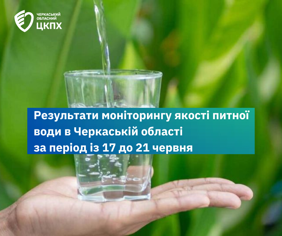 Результати моніторингу якості питної води в Черкаській області за період із 17 до 21 червня