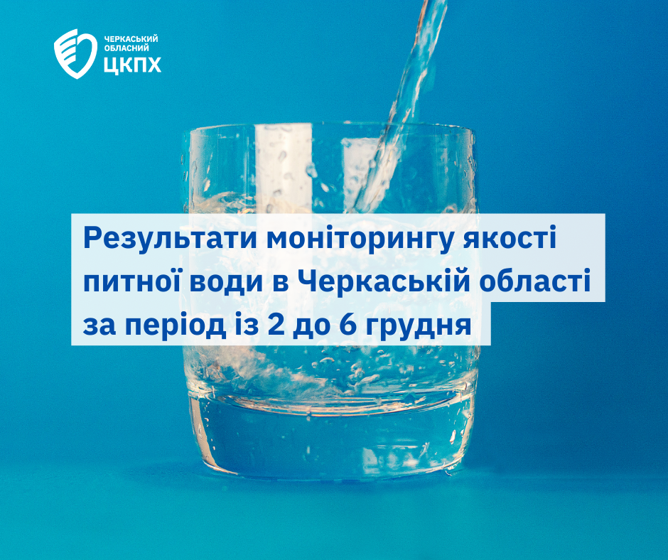 Результати моніторингу якості питної води в Черкаській області за період із 2 до 6 грудня