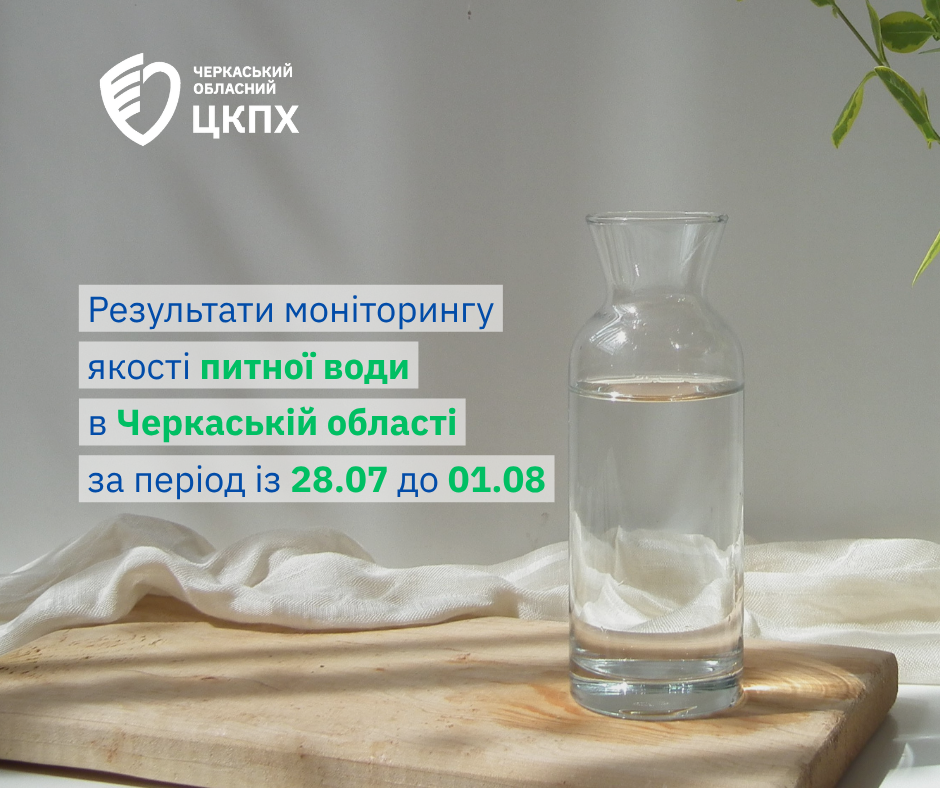 У межах щоденного моніторингу якості та безпечності питної води ДУ «Черкаський обласний ЦКПХ МОЗ України» за період із 28 липня до 1 серпня 2025 року із джерел та мереж централізованого водопостачання відібрано та досліджено 116 проб питної води за мікробіологічними показниками та 94 – за санітарно-хімічними.