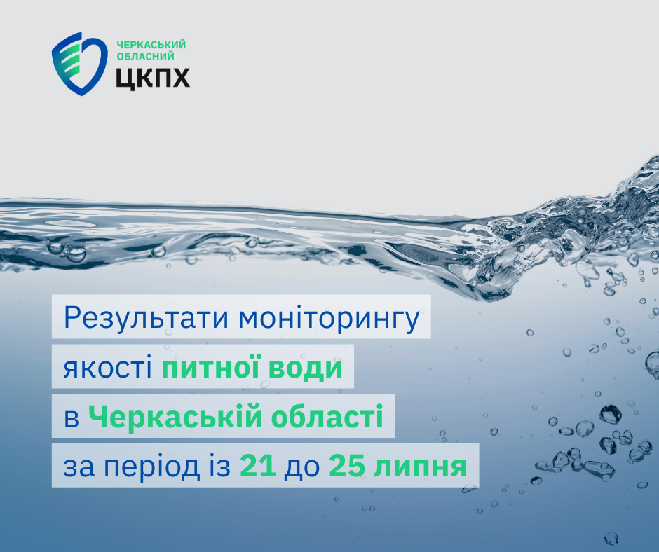 У межах щоденного моніторингу якості та безпечності питної води ДУ «Черкаський обласний ЦКПХ МОЗ України» за період із 21 до 25 липня 2025 року із джерел та мереж централізованого водопостачання відібрано та досліджено 123 проби питної води за мікробіологічними показниками та 90 – за санітарно-хімічними.
