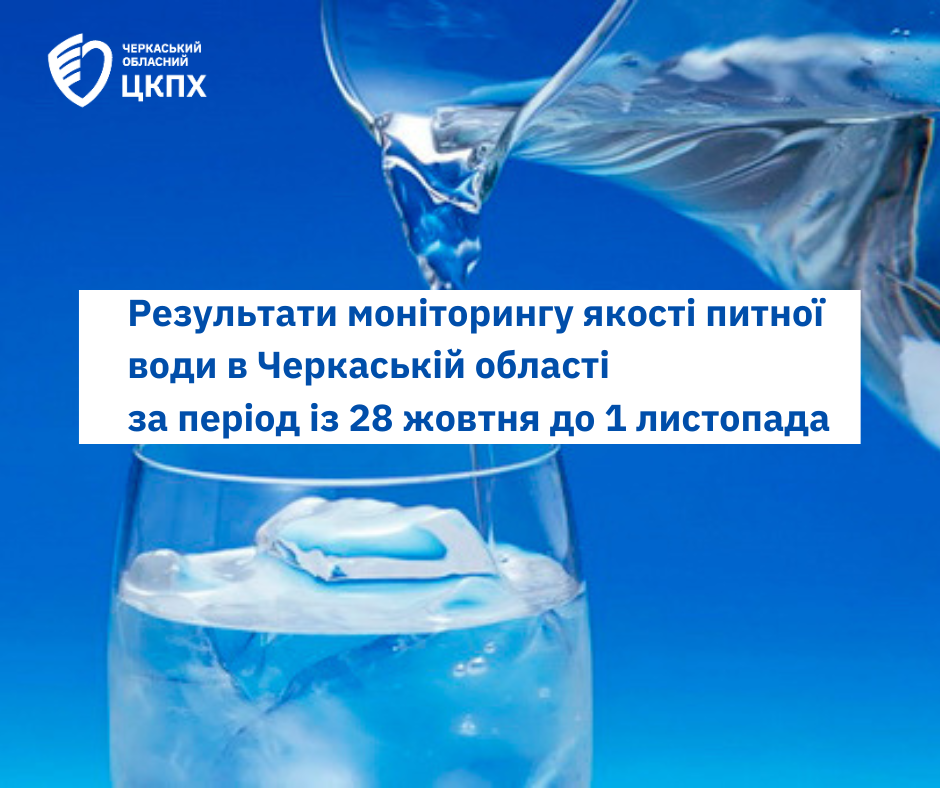 У межах щоденного моніторингу якості та безпечності питної води Державною установою «Черкаський обласний центр контролю та профілактики хвороб МОЗ України» за період із 28 жовтня до 1 листопада 2024 року із джерел та мереж централізованого водопостачання відібрано та досліджено 145 проб питної води за мікробіологічними показниками та 106 – за санітарно-хімічними показниками.