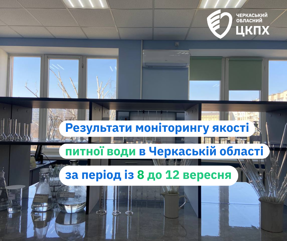 У межах щоденного моніторингу якості та безпечності питної води ДУ «Черкаський обласний ЦКПХ МОЗ України» за період із 8 до 12 вересня 2025 року із джерел та мереж централізованого водопостачання відібрано та досліджено 143 проби питної води за мікробіологічними показниками та 113 за санітарно-хімічними.