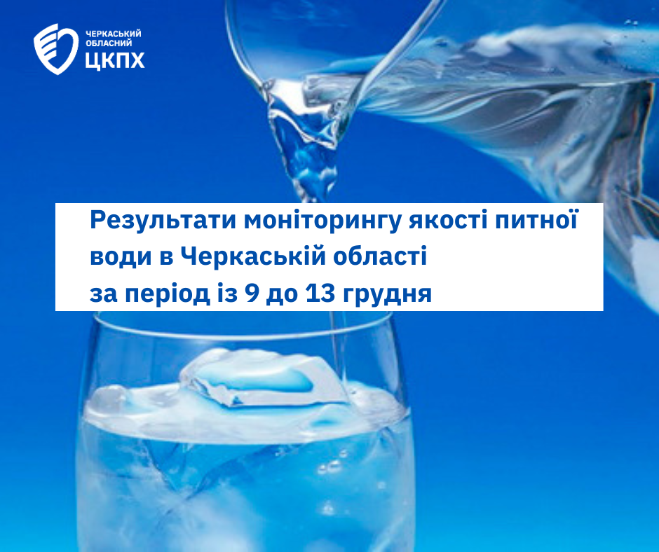 У межах щоденного моніторингу якості та безпечності питної води ДУ «Черкаський ОЦКПХ МОЗ» за період із 9 до 13 грудня 2024 року із джерел та мереж централізованого водопостачання відібрано та досліджено 133 проби питної води за мікробіологічними та 107 за санітарно-хімічними показниками.