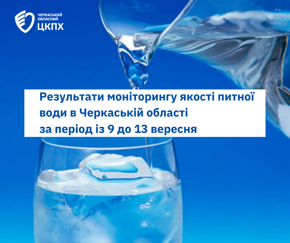У межах щоденного моніторингу якості та безпечності питної води Державною установою «Черкаський обласний центр контролю та профілактики хвороб МОЗ України» за період з 9 до 13 вересня 2024 року із джерел та мереж централізованого водопостачання відібрано та досліджено 105 проб питної води за мікробіологічними та 100 – за санітарно-хімічними показниками.