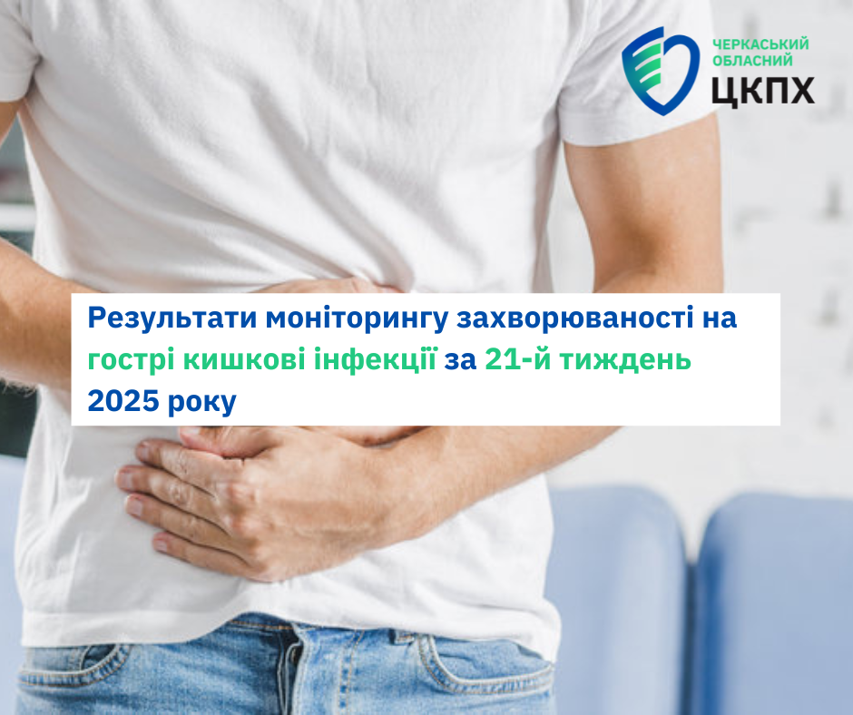 За результатами щотижневого моніторингу інфекційної захворюваності на гострі кишкові інфекції з 19 по 25 травня 2025 (21-й тиждень року), який проведено фахівцями Державної установи «Черкаський обласний центр контролю та профілактики МОЗ України», в області зареєстровано 25 випадків захворювань на гострі кишкові інфекції.
