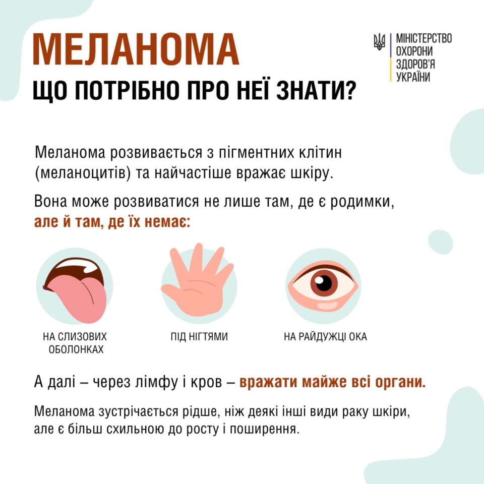 Більше про меланому – дивіться у інфографіці від МОЗ України.