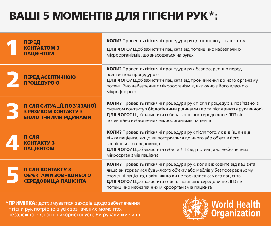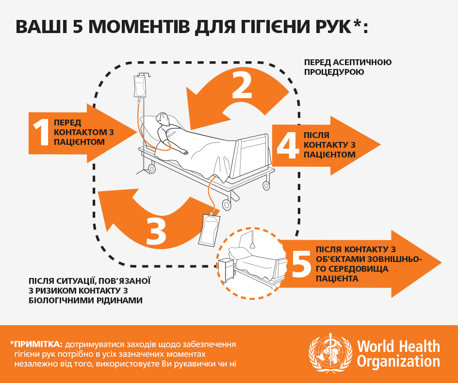 Саме тому гігієна рук – на чільному місці серед заходів з профілактики інфекцій та інфекційного контролю в закладах охорони здоров’я. Вона належить до стандартних заходів захисту, застосовуваних під час надання медичної допомоги та догляду за пацієнтами попри наявні інфекції.