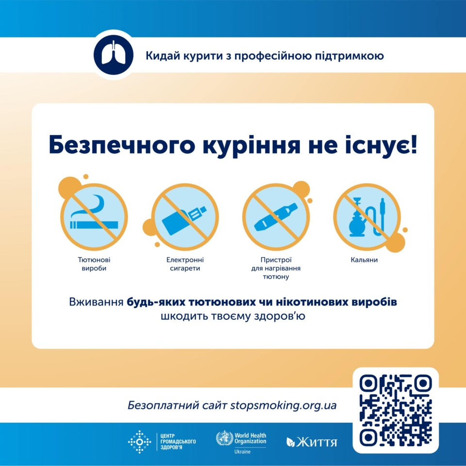 Безпечного куріння не існує! Шкоду для твого здоров’я несуть як звичайні сигарети, так і електронні, а також тютюнові вироби для нагрівання (ТВЕНи) та кальяни.