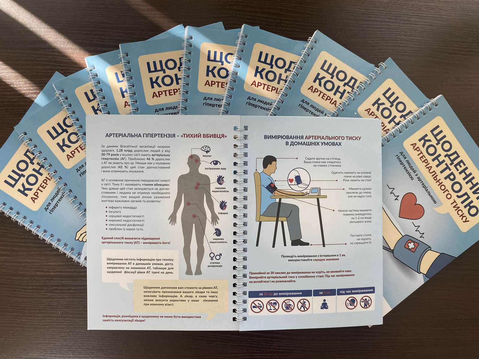 Щоденник контролю артеріального тиску – зручний та інформативний посібник для людей із підвищеним артеріальним тиском. Сімейні лікарі зможуть використовувати примірники у подальшій роботі зі своїми пацієнтами.