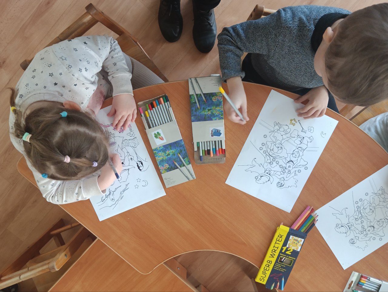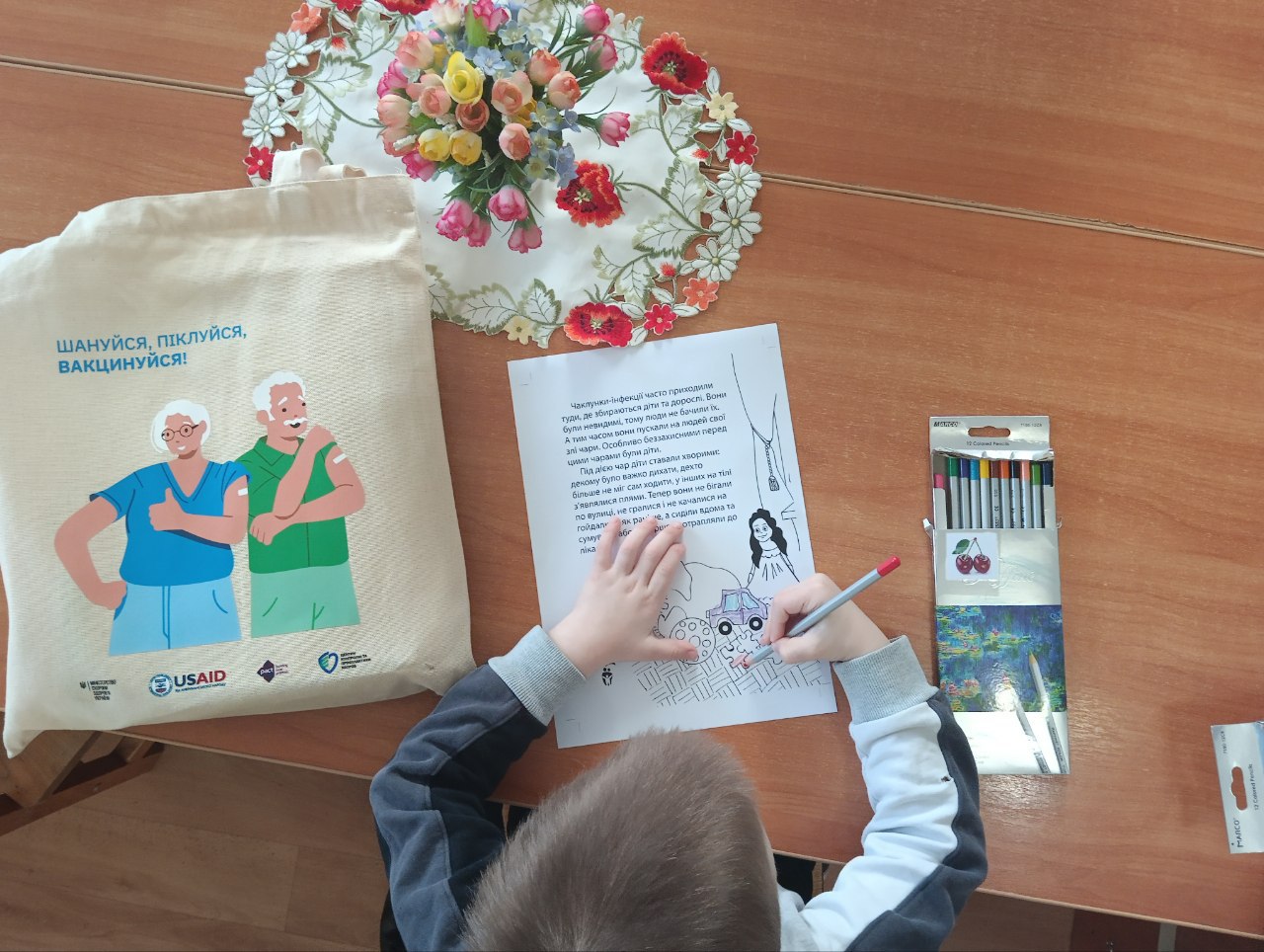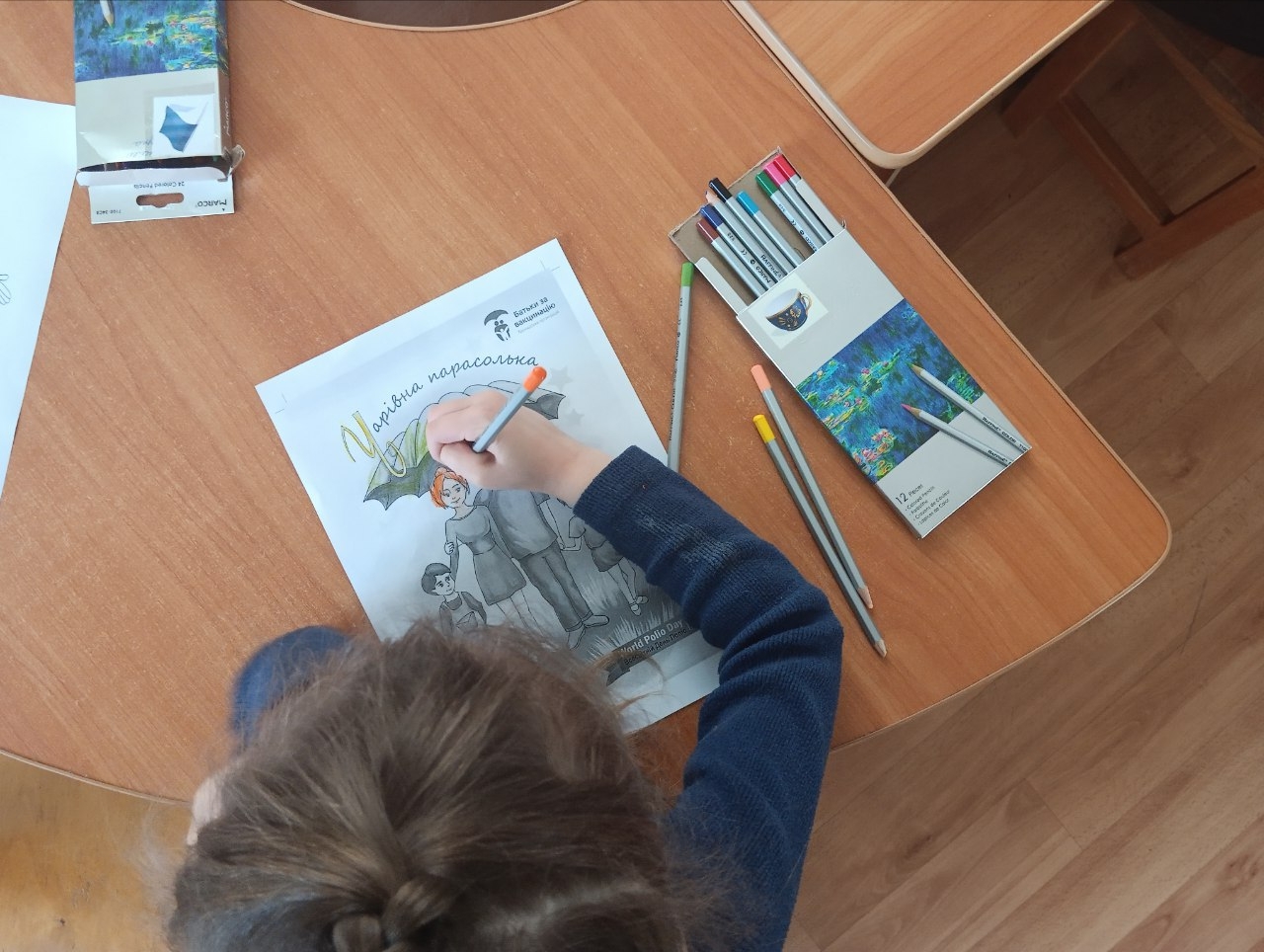 Маленьким учасникам розмови подарували листівки-розмальовки за сюжетом казки, ліфлети про вакцинацію та книжку «Чарівна парасолька».