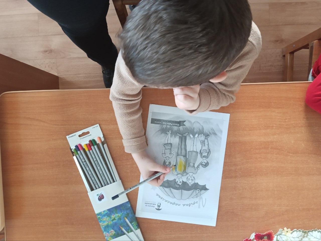 Розмальовуючи ілюстрації, діти прослухали казку «Чарівна парасолька». У ході зустрічі їм пояснили, що «чарівна парасолька» (вакцина) захистить від «чар злих чаклунок» (інфекційних захворювань). Тож щеплення буде діяти, як парасолька під час дощу.