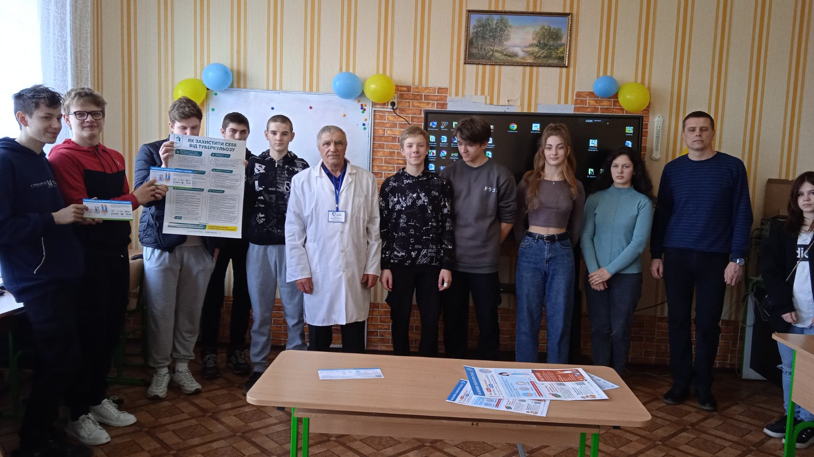 - Чигиринське відділення: Лікарі Василь Щербина, Світлана Притула, Олена Полудненко зустрілися з учнями, педагогами Вітівської гімназії та Стецівського ліцею, внутрішньо переміщеними особами, які проживають у навчально-реабілітаційному центрі Чигирина. Обговорювали шляхи зараження туберкульозом, симптоми, профілактику та важливість флюорографічних обстежень. Із медиками Чигиринського ЦПМСД та багатопрофільної лікарні провели круглий стіл щодо протитуберкульозної допомоги в умовах війни, міграції та соціальних викликів.