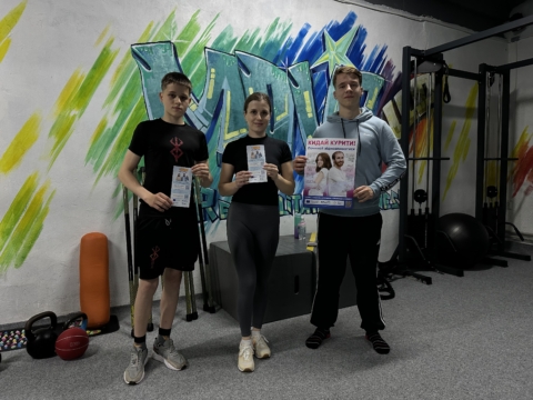 Лікарка-епідеміологиня Дарина Марущак та лікарка із загальної гігієни Юлія Вінніцька розповіли відвідувачам спортивного залу про переваги здорового способу життя та згубний вплив тютюнокуріння на організм людини.