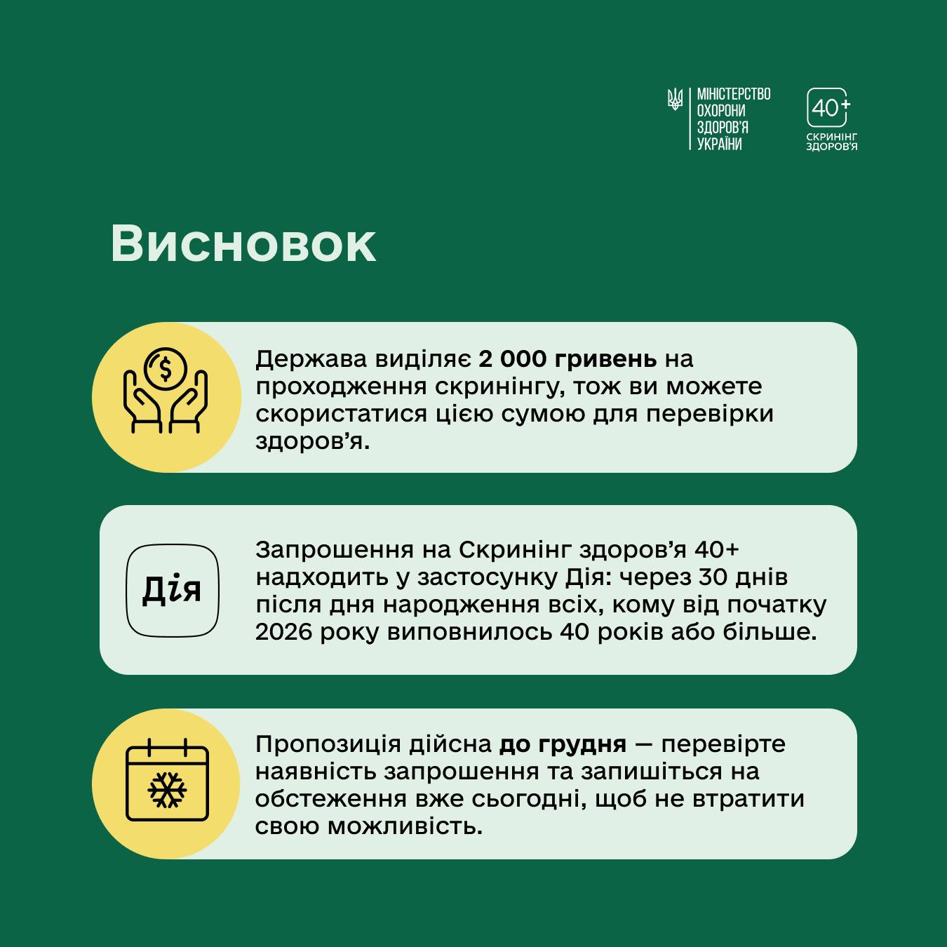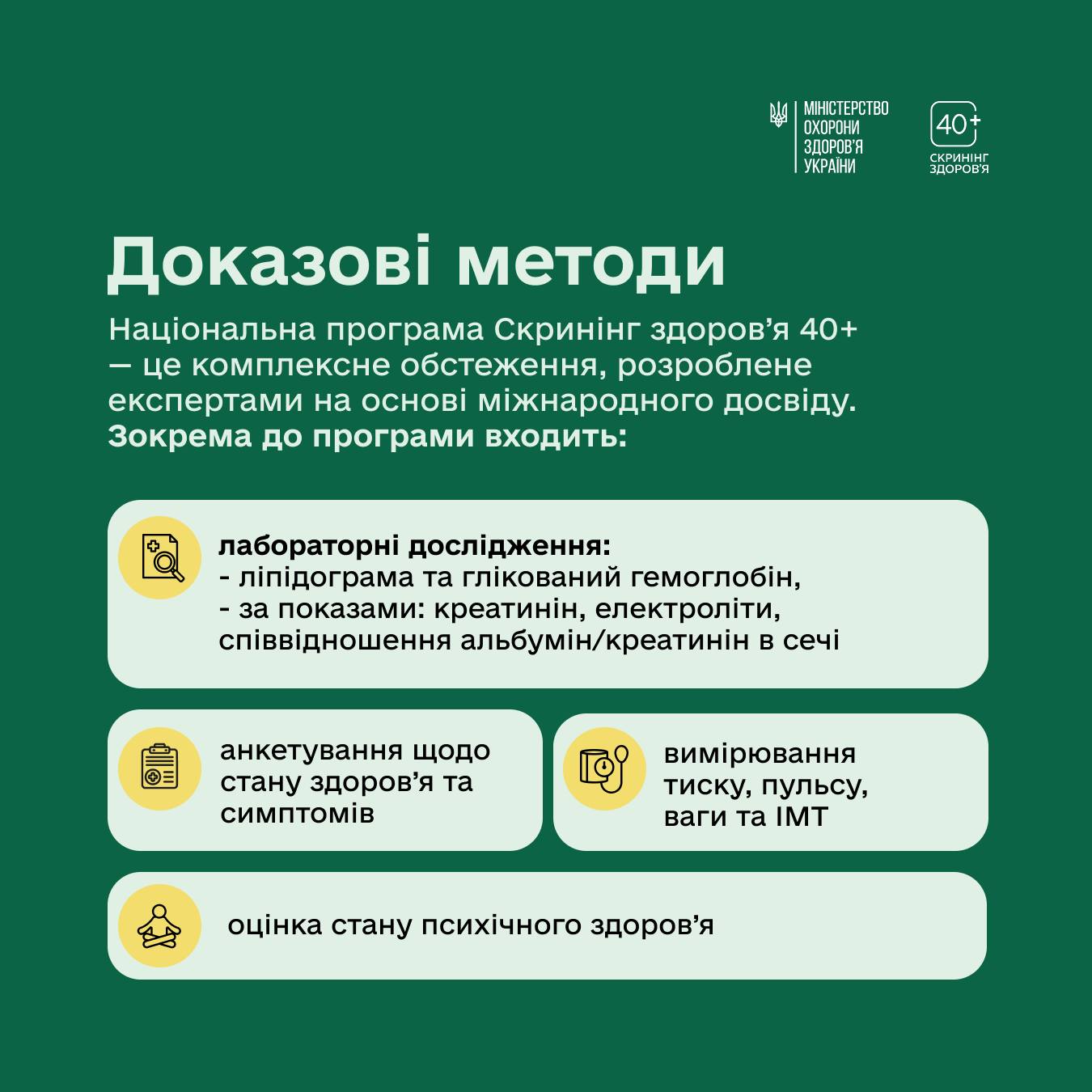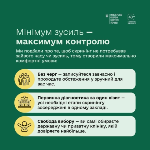 З початку року в Україні стартувала програма Скринінг здоров’я 40+. Це можливість безоплатно перевірити стан свого організму та вчасно оцінити індивідуальні ризики.