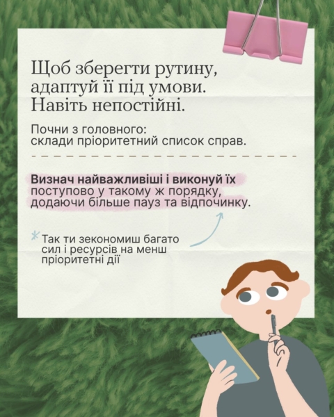 Бережи рутину, а вона збереже тобі сили і ресурси.