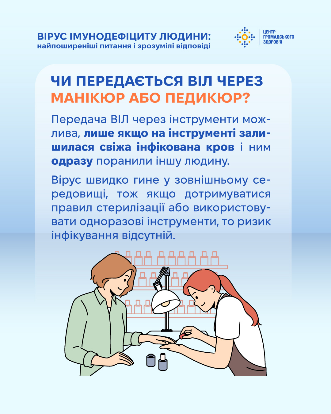 Навколо вірусу імунодефіциту людини (ВІЛ) досі існує чимало питань, зокрема щодо шляхів передачі, профілактики та лікування. Центр громадського здоров’я відповідає на найпоширеніші з них.