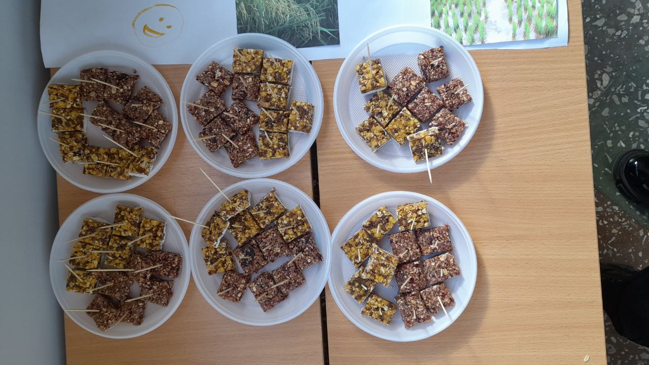 Основа для приготування каш – крупи з різних зернових культур. Відгадуючи загадки та куштуючи смаколики у вигляді батончиків, малеча дізналась про поживну цінність злаків. Наприклад: