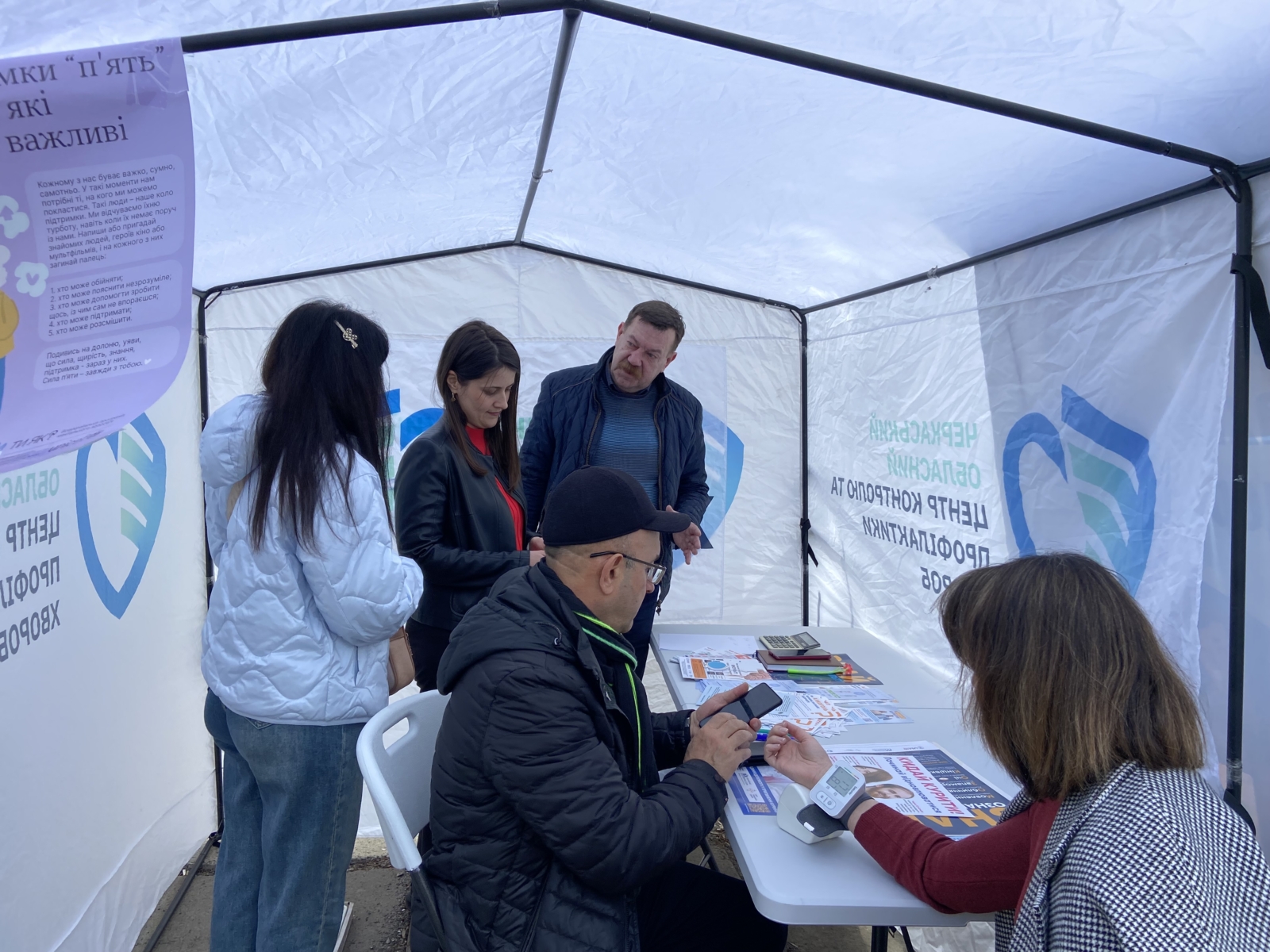 Охочим вимірювали артеріальний тиск, визначали індекс маси тіла та надавали професійні консультації щодо профілактики хвороб.
