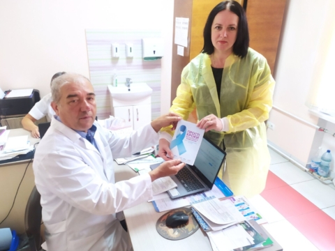 Медики отримали відривні блокноти «Прості кроки до раннього виявлення раку», які містять стислі й важливі відомості про рак шийки матки, молочної залози та рак передміхурової залози.