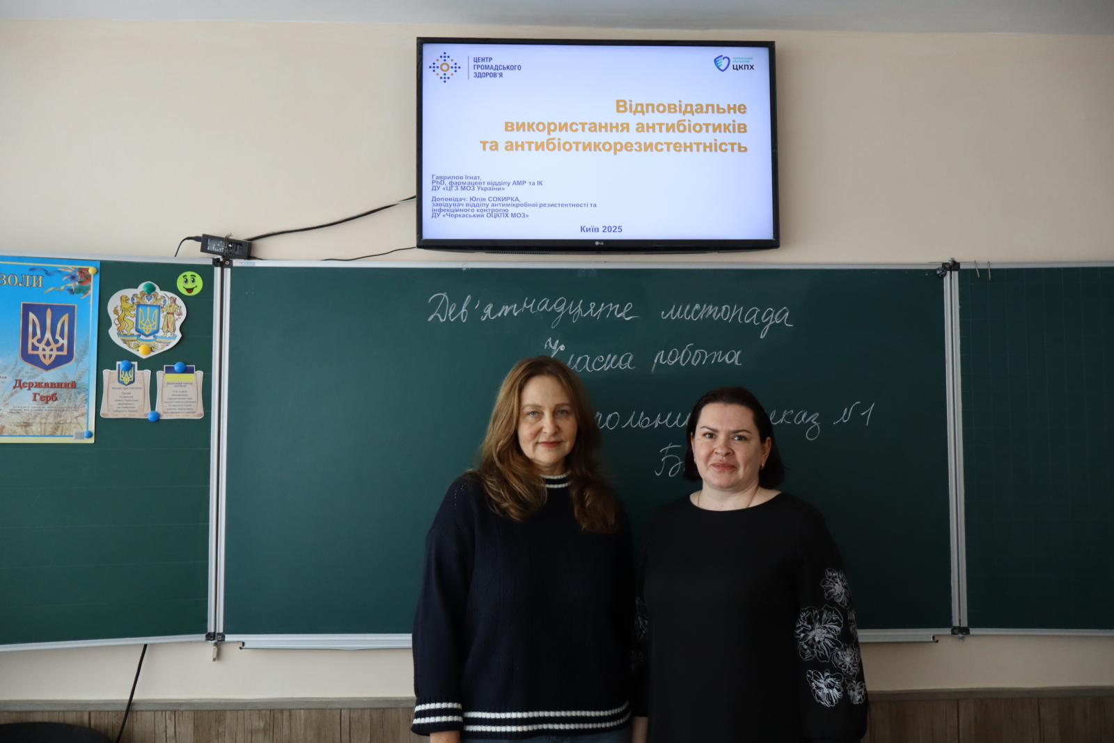 У межах інформаційної кампанії, спрямованої на підвищення обізнаності громадськості про правильне використання антибіотиків, фахівчині Черкаського обласного центру контролю та профілактики хвороб Юлія Сокирка та Людмила Самойленко відвідали колективи Черкаської спеціалізованої школи № 20 та Черкаської загальноосвітньої школи № 24.