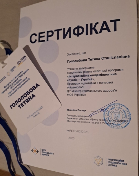 14 березня відбувся випуск резидентів 5-ї когорти просунутого рівня освітньої програми «Інтервенційна епідеміологічна служба – Україна». Серед випускників – завідувачка відділу імунопрофілактики Черкаського обласного центру контролю та профілактики хвороб Тетяна Гололобова.