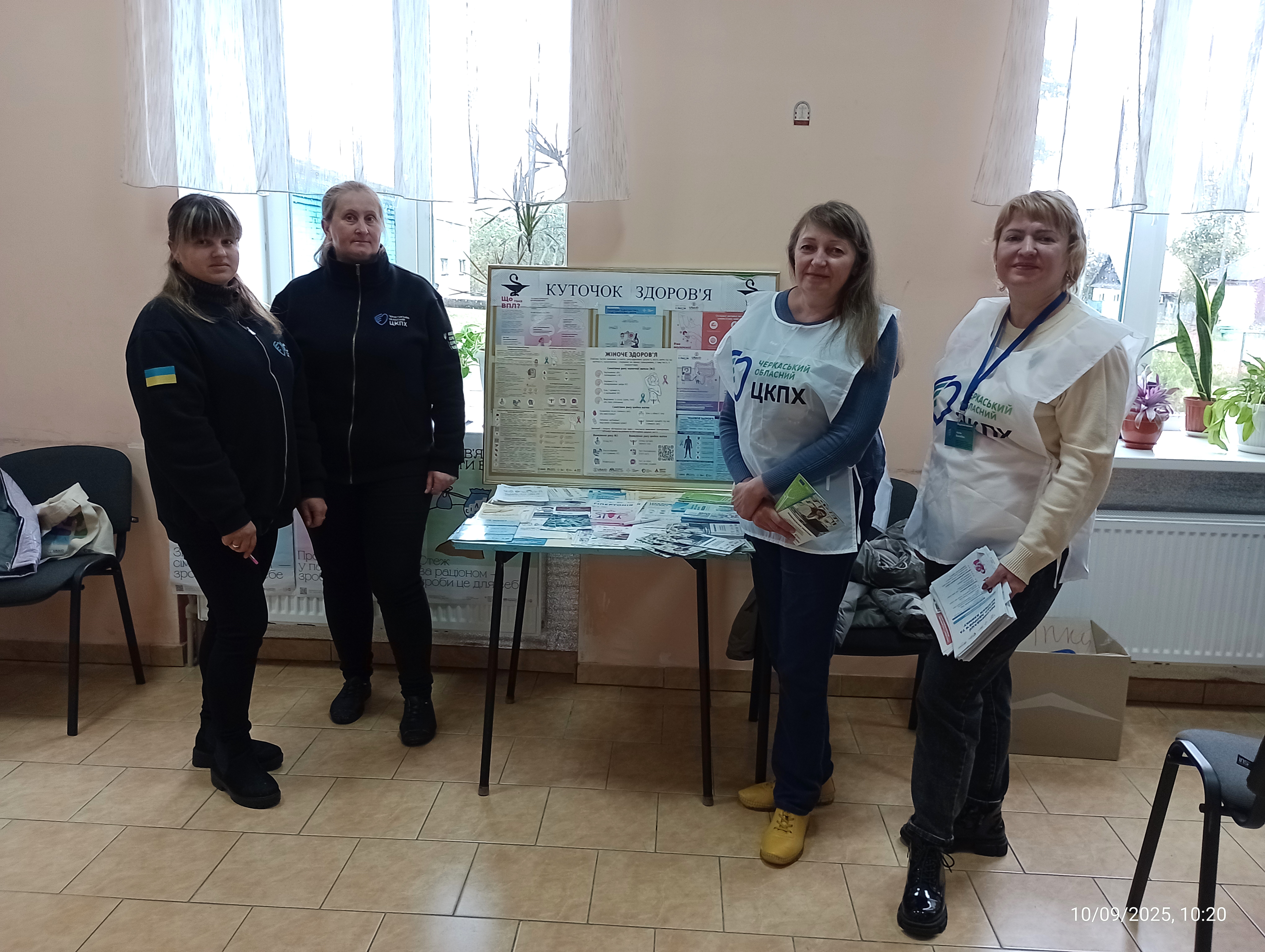 У складі мобільної команди від Черкаського обласного ЦКПХ працювали фахівці відділу епідеміологічного нагляду та профілактики неінфекційних хвороб – лікарка Алла Балабан та психологиня Наталія Жуковська, відділу імунопрофілактики – Людмила Гаркава, відділу антимікробної резистентності та інфекційного контролю – Вікторія Соловйова, відділу інформаційних систем та захисту інформації – В’ячеслав Тур.