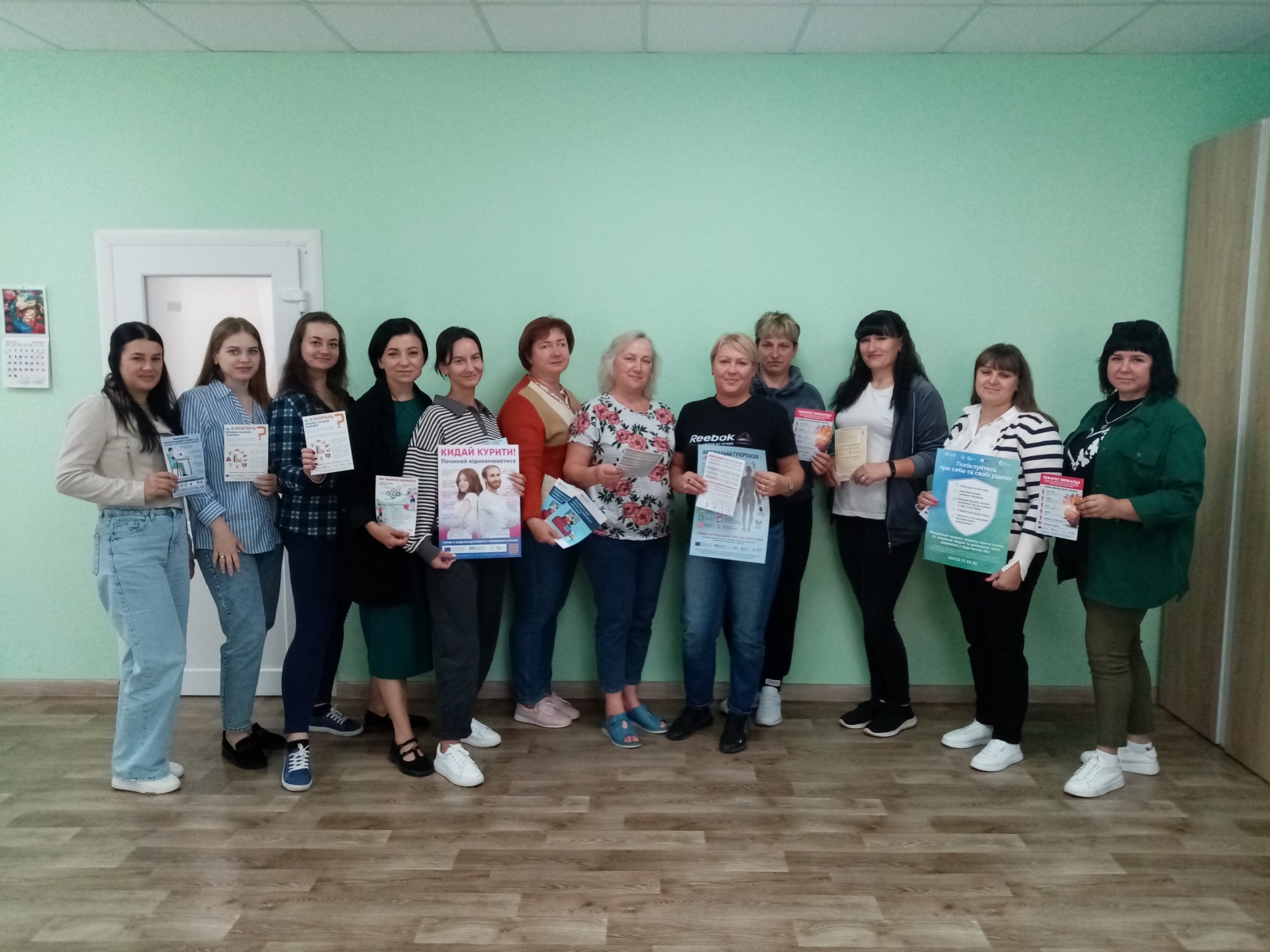 Фахівці відділення епіднагляду за неінфекційними захворюваннями Золотоніського районного відділу Черкаського обласного центру контролю та профілактики хвороб спільно зі спеціалістами Держпродспоживслужби провели санітарно-просвітницькі заходи для працівників та внутрішньо переміщених осіб Центру надання соціальних послуг Новодмитрівської сільської ради.
