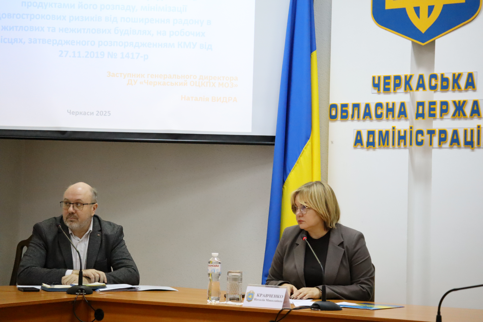 Заступниця генерального директора Черкаського обласного ЦКПХ Наталія Видра інформувала присутніх про хід виконання Плану заходів з контролю злоякісних новоутворень в Черкаській області на 2024-2030 роки, Національної стратегії контролю злоякісних новоутворень на період до 2030 року та про стан виконання Плану заходів щодо зниження рівня опромінення населення радоном та продуктами його розпаду, мінімізації довгострокових ризиків від поширення радону в житлових та нежитлових будівлях на робочих місцях.