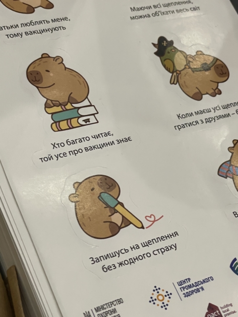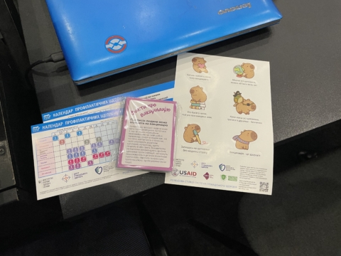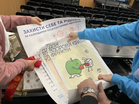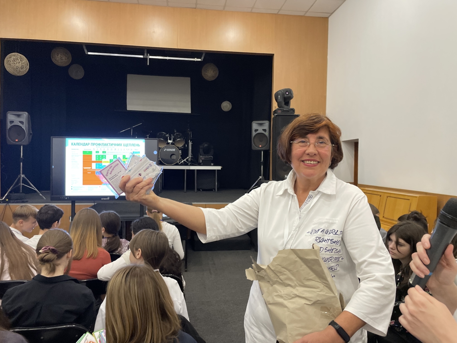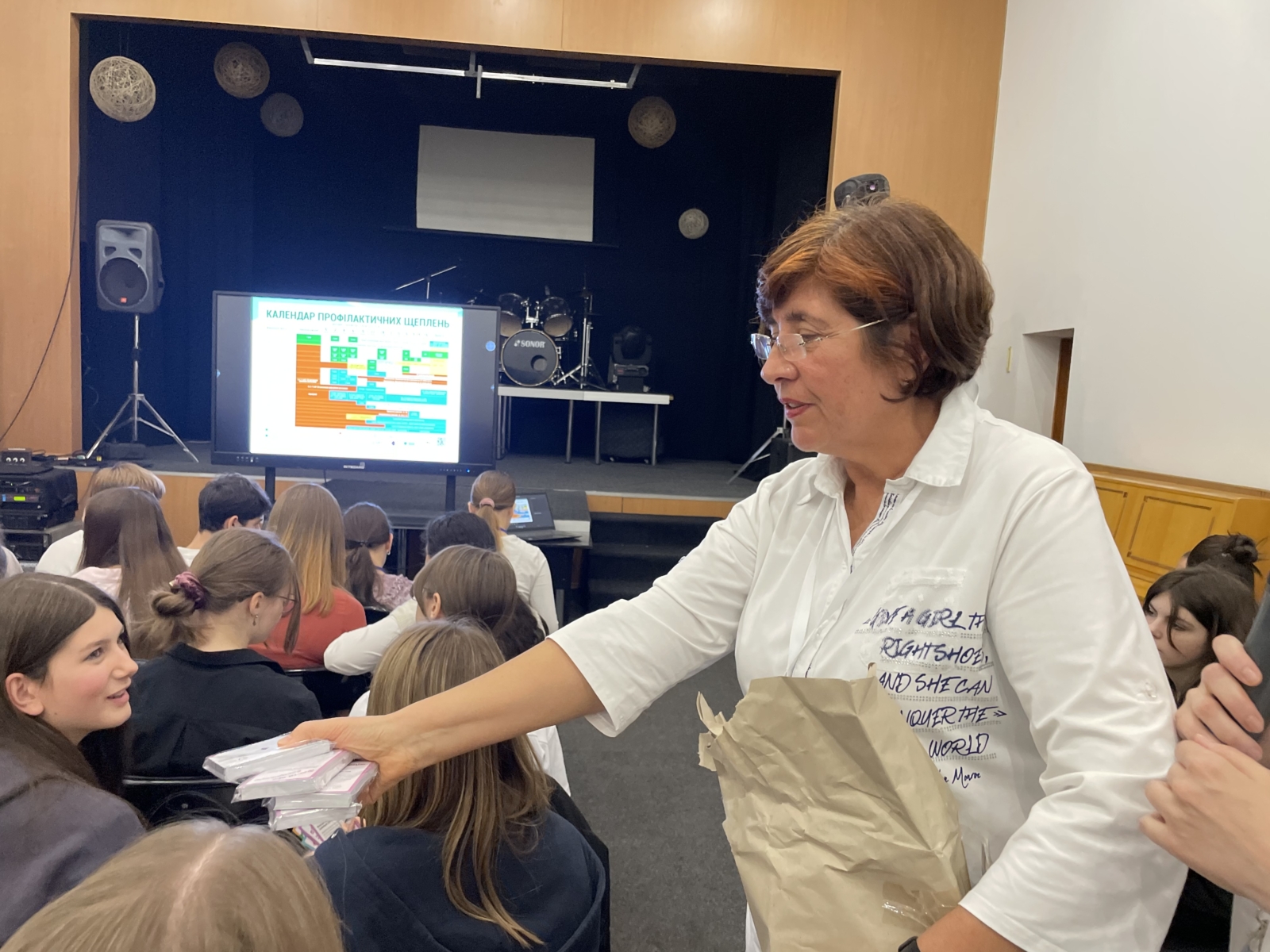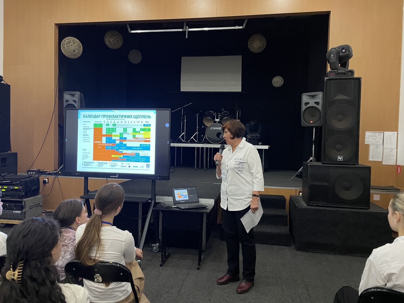 А ліцеїсти отримали тематичні подарунки – настільні ігри про вакцинацію, наліпки «вакцинований – захищений» та флаєри «Календар профілактичних щеплень».