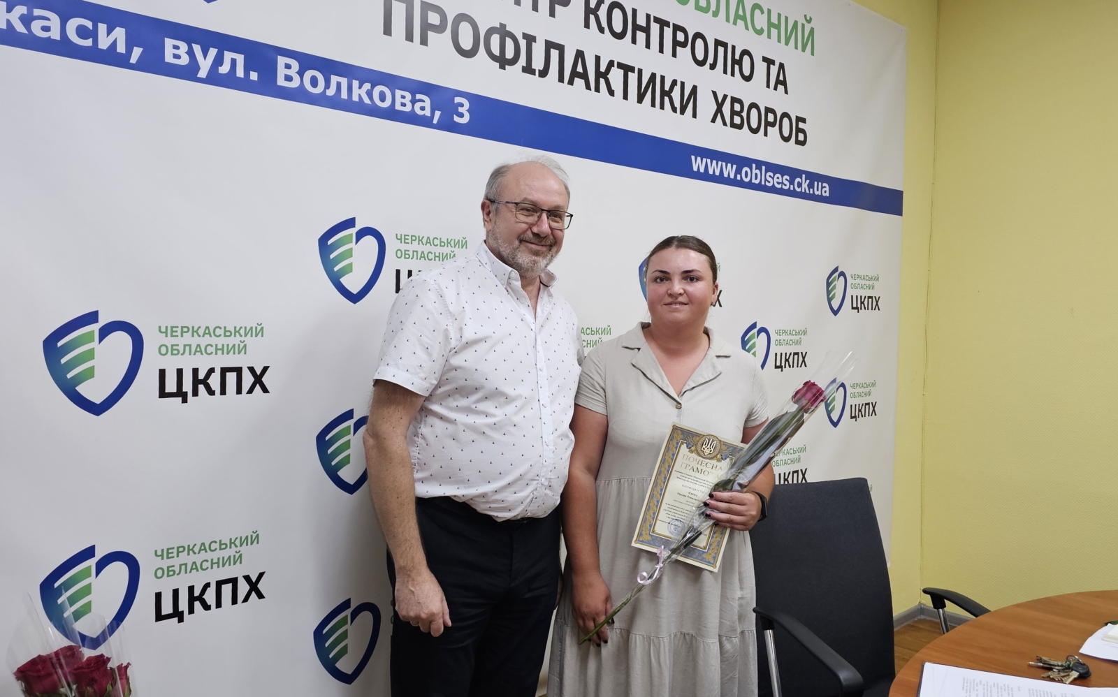 Грамотами Черкаського обласного ЦКПХ були нагороджені Алла Балабан – лікар із загальної гігієни відділу епідеміологічного нагляду (спостереження) та профілактики неінфекційних захворювань, Максим Осадчий – фельдшер-лаборант лабораторії радіологічних досліджень та інших фізичних факторів, Оксана Чорна – завідувач санітарно-гігієнічної лабораторії, Юлія Шмиголь – фельдшер-лаборант бактеріологічної лабораторії, Інна Журба – вірусолог вірусологічної лабораторії, Тетяна Коваль – фельдшер-лаборант лабораторії особливо небезпечних інфекцій, Тетяна Гончар – помічник лікаря-епідеміолога санітарно-карантинного відділу, Тетяна Гололобова – лікар-епідеміолог відділу імунопрофілактики, Тетяна Микитенко – помічник лікаря-епідеміолога відділу епідеміологічного нагляду (спостереження) та профілактики інфекційних захворювань, Людмила Самойленко – помічник лікаря-епідеміолога відділу інфекційного контролю, Лариса Нетахата – фахівець із зв’язків з громадськістю та пресою відділу комунікації та інформаційно-роз’яснювальної роботи та фахівці відокремлених структурних підрозділів – Тетяна Гіль – фельдшер-лаборант Звенигородського районного відділу, Ніна Погрібна – фельдшер санітарного Звенигородського районного відділу, Надія Малига – помічник лікаря-епідеміолога Ватутінського відділення Звенигородського районного відділу, Олеся Череватенко – фельдшер санітарний Катеринопільського відділення Звенигородського районного відділу, Галина Ігнатова – помічник лікаря-епідеміолога Катеринопільського відділення Звенигородського районного відділу, Катерина Сивак – фельдшер санітарний Тальнівського відділення Звенигородського районного відділу, Тетяна Моцяк – лаборант з бактеріології Тальнівського відділення Звенигородського районного відділу, Тетягна Крива – помічник лікаря-епідеміолога Шполянського відділення Звенигородського районного відділу, Лариса Ліпінська – фельдшер-лаборант Шполянського відділення Звенигородського районного відділу, Оксана Гирба – помічник лікаря-епідеміолога Чорнобаївського відділення Золотоніського районного відділу, Надія Парамей – молодша медична сестра Чорнобаївського відділення Золотоніського районного відділу, Іван Гейко – завідувач Уманського міськрайонного відділу, Ольга Вілічук – фельдшер-лаборант Уманського міськрайонного відділу, Олена Чуднівець – фельдшер-лаборант Жашківського відділення Уманського міськрайонного відділу, Марія Мартинюк – дезінфектор Жашківського відділення Уманського міськрайонного відділу, Наталія Жарикова – фельдшер санітарний Маньківського відділення Уманського міськрайонного відділу, Наталія Довгопола – помічник лікаря-епідеміолога Маньківського відділення Уманського міськрайонного відділу, Анатолій Шкляр – помічник лікаря-епідеміолога Монастирищенського відділення Уманського міськрайонного відділу, Оксана Пушкар – фельдшер-лаборант Христинівського відділення Уманського міськрайонного відділу, Тетяна Полонська – помічник лікаря-епідеміолога Христинівського відділення Уманського міськрайонного відділу, Наталія Харченко – фельдшер-лаборант Городищенського відділення Черкаського міськрайонного відділу, Валентина Кривенко – фельдшер-лаборант Городищенського відділення Черкаського міськрай