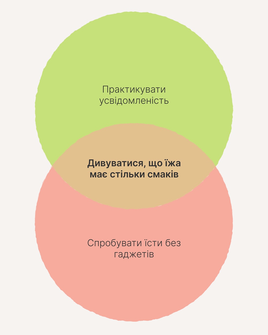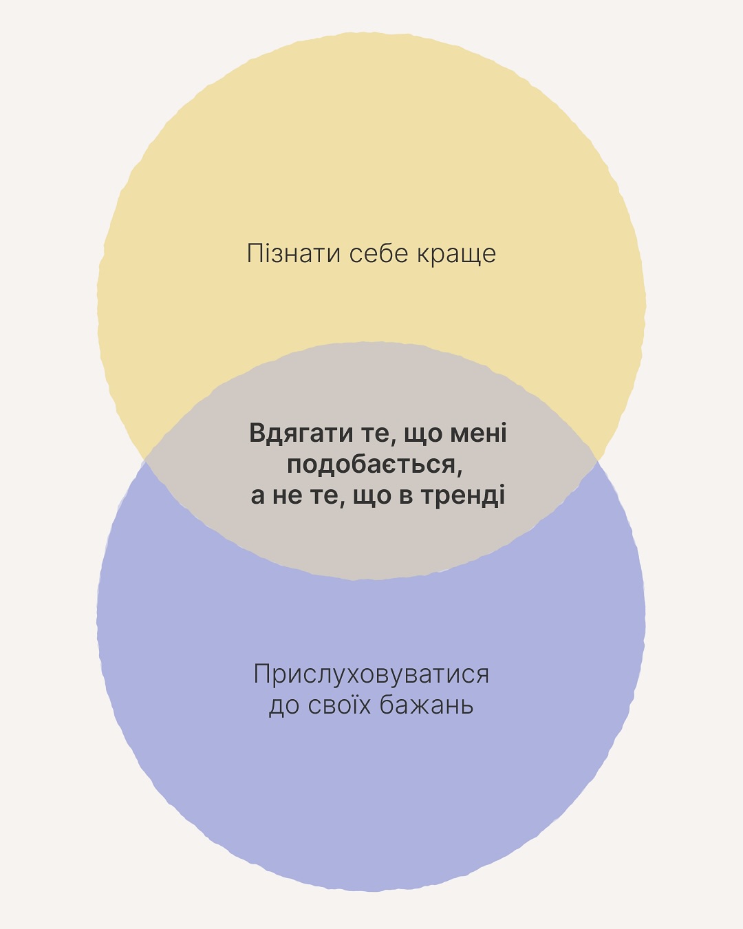 Головне — не зупиняйся. Продовжуй планувати і пробувати різне. Справжні бенефіти від турботи про себе зазвичай просто не поміщаються в кола чи їхні перетини 😉