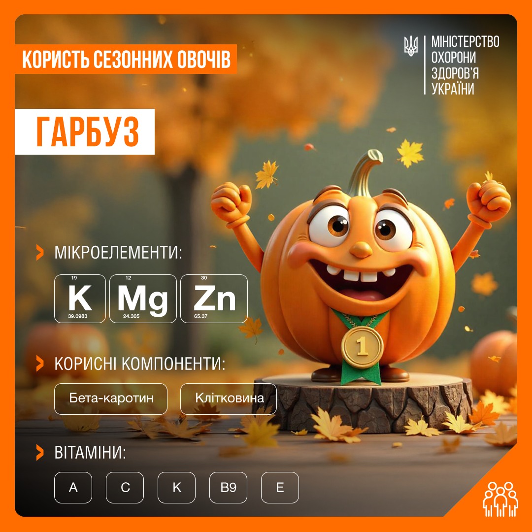 Гарбуз також містить невелику кількість білка та низький рівень жирів, а отже – це хороший вибір для збалансованого меню.