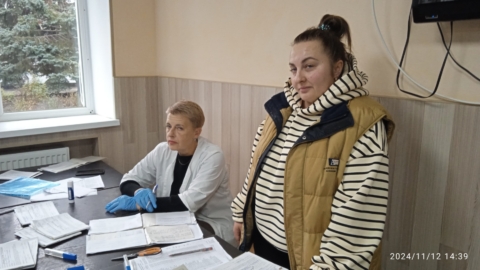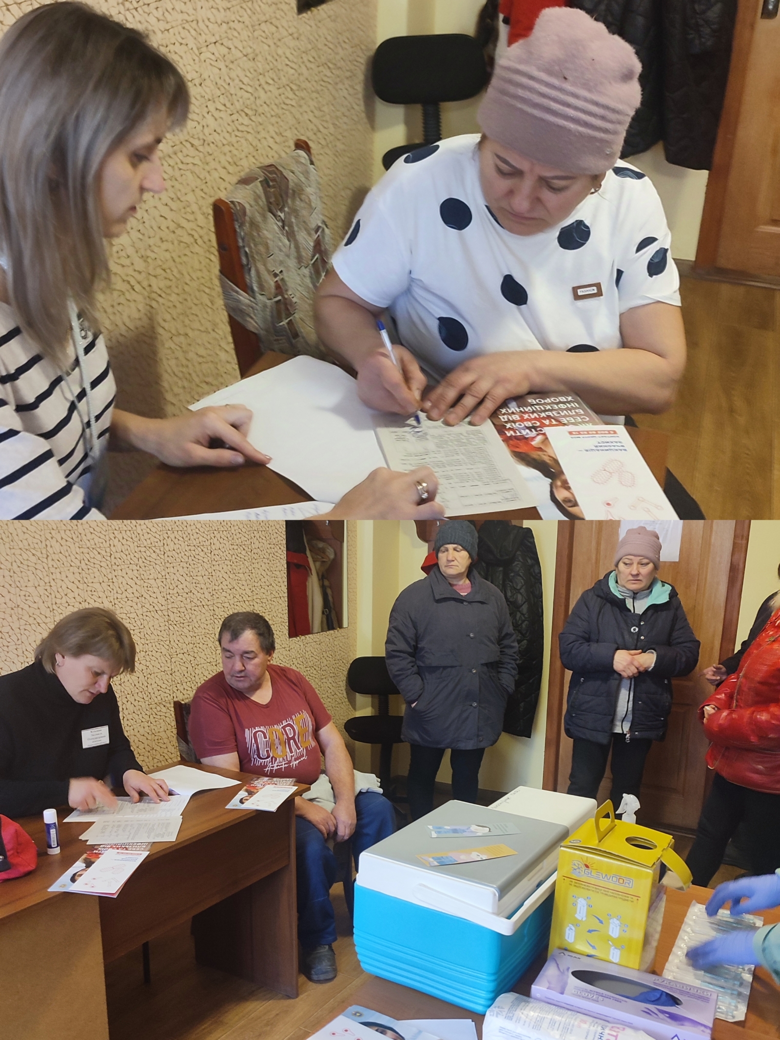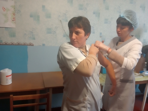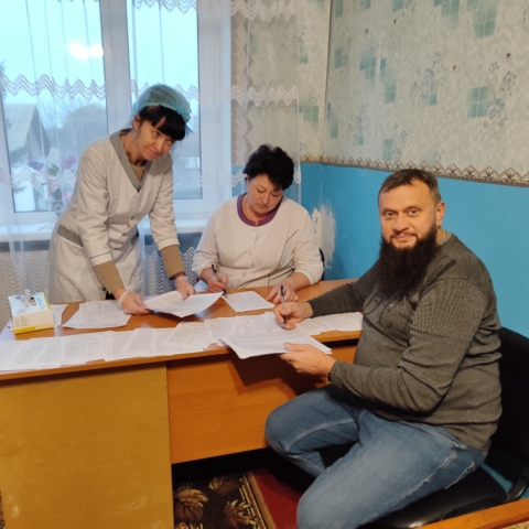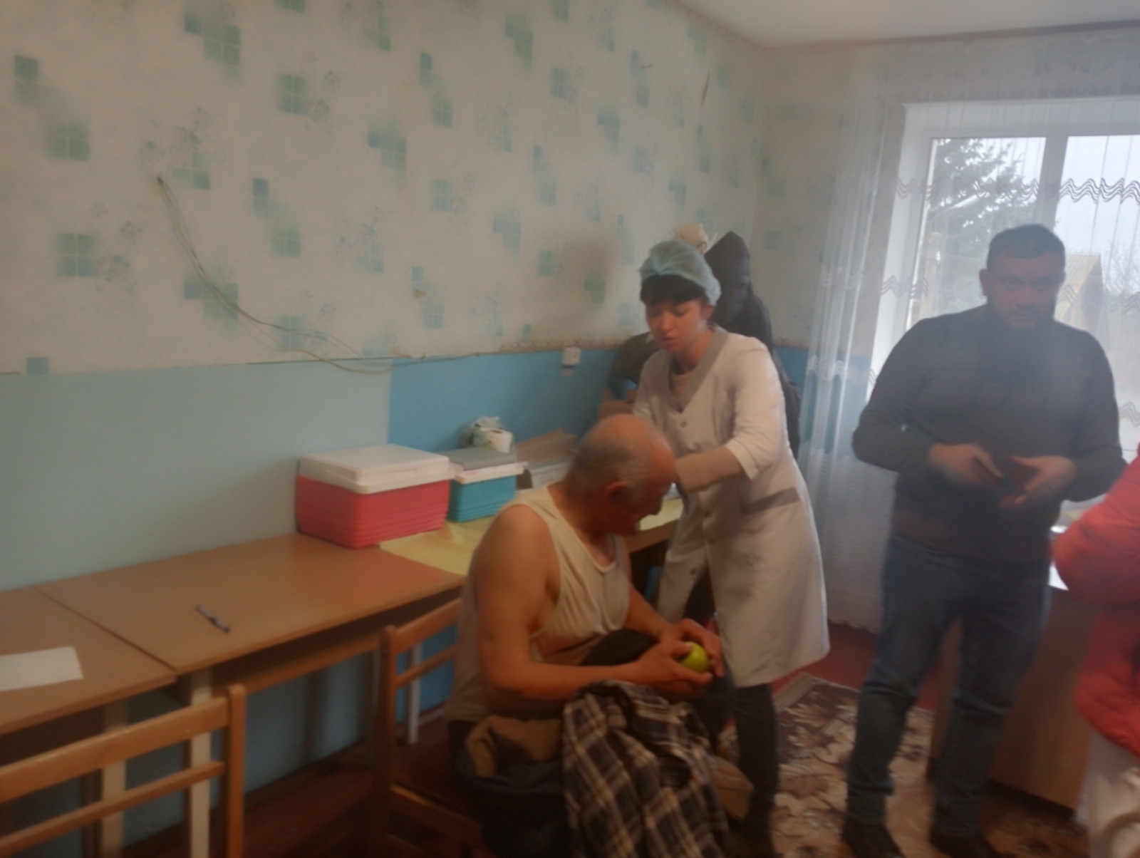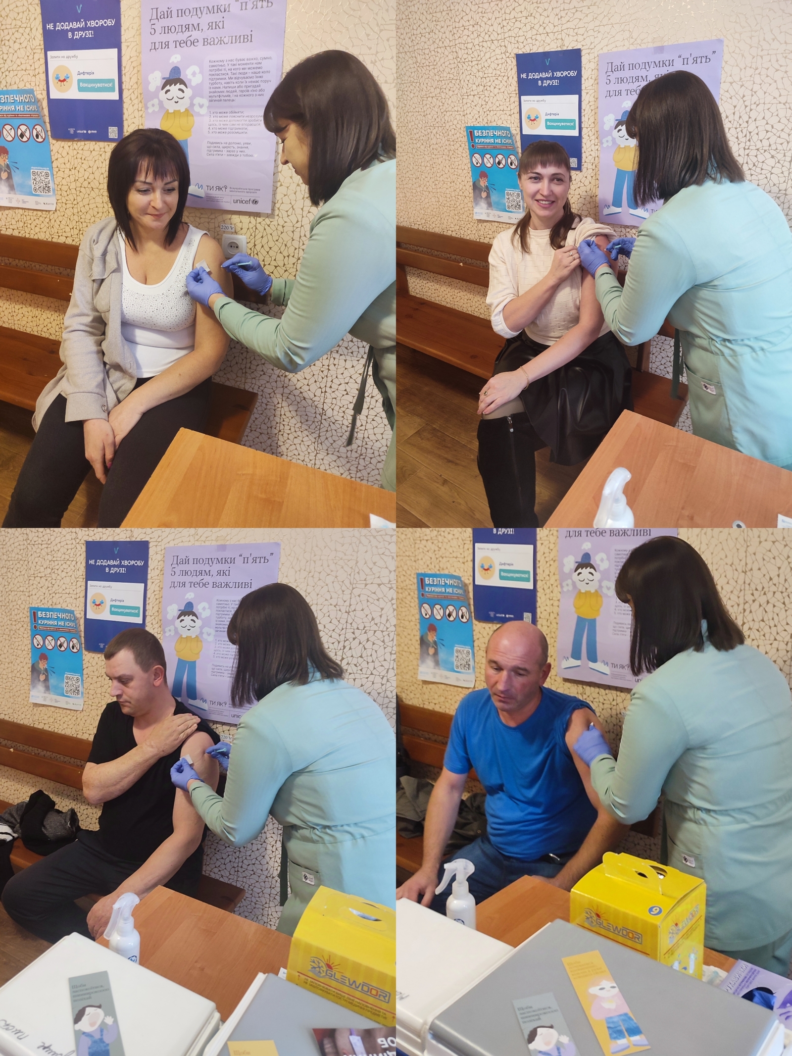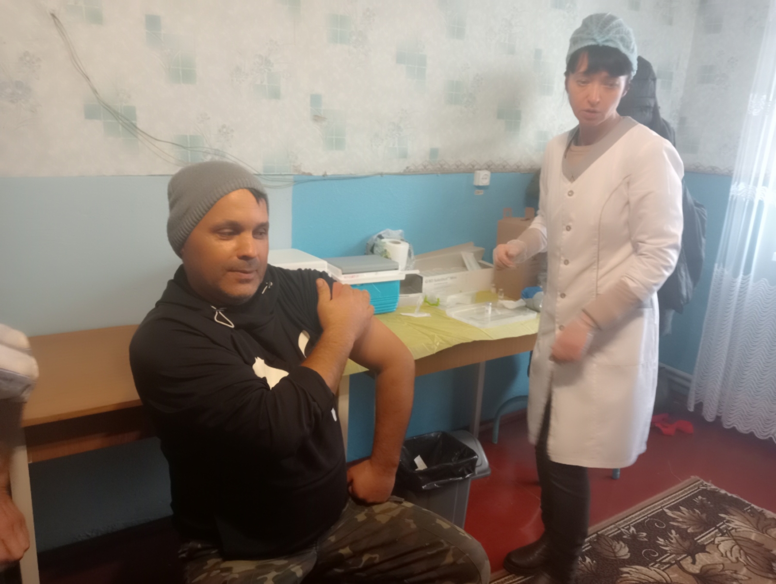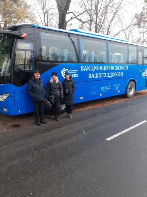 Згодом вакцинальним автобусом завідувач Уманського міськрайонного відділу Іван Гейко, завідувачка Монастирищенського відділення Вікторія Грубська та її колега, помічниця лікаря-епідеміолога Людмила Кузьміна, разом із працівниками Монастирищенського центру ПМСД відвідали КП «Монастирищенське виробниче управління житлово-комунального господарства».