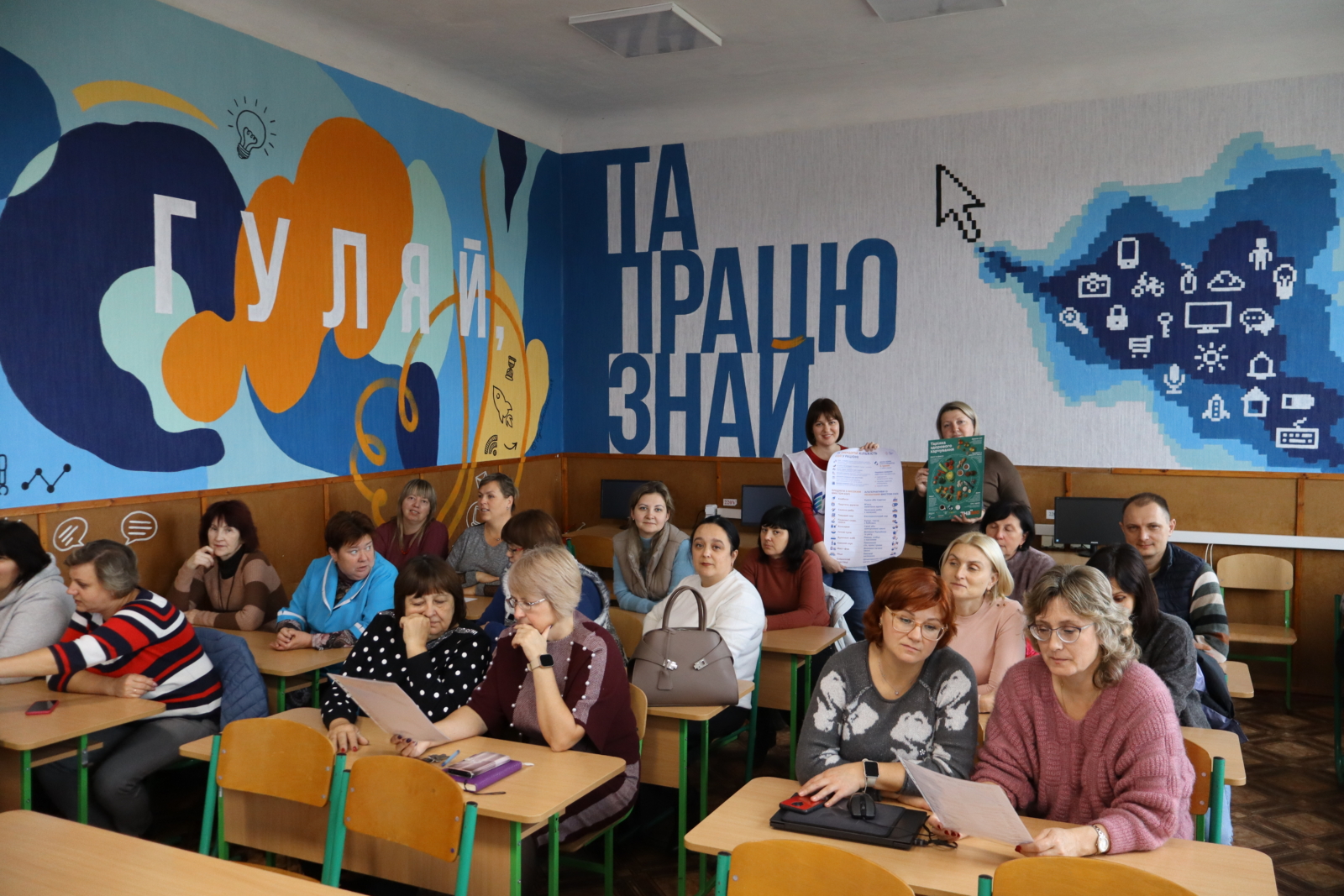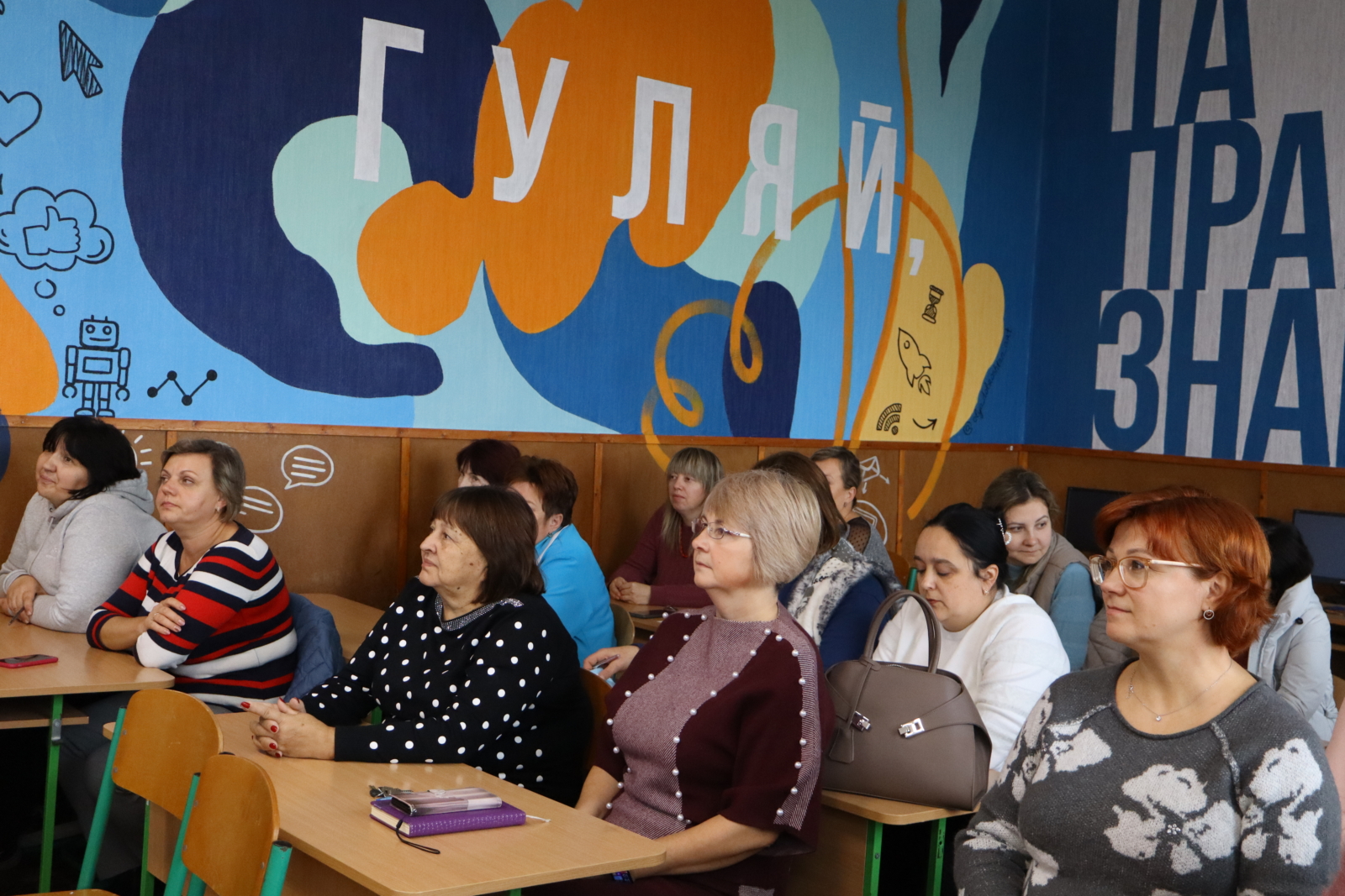 Освітяни ознайомилися з рекомендаціями щодо раціонального поєднання продуктів у щоденному раціоні, ролі овочів, фруктів, цільнозернових виробів, а також з важливістю обмеження споживання цукру та жирів.