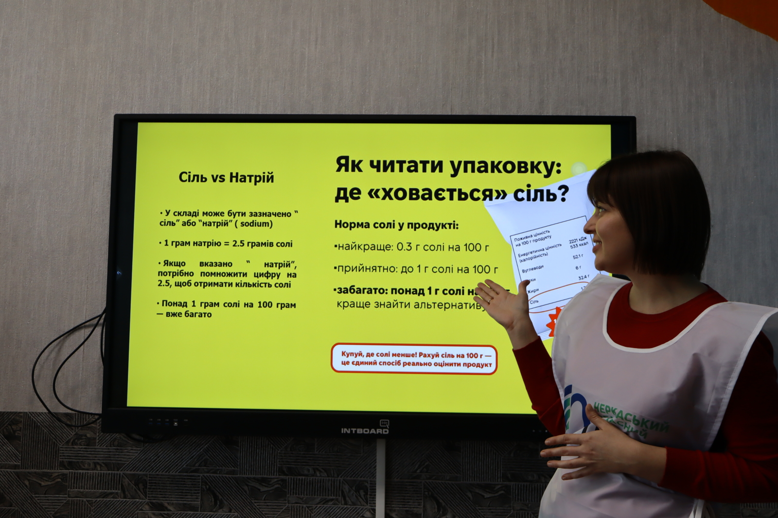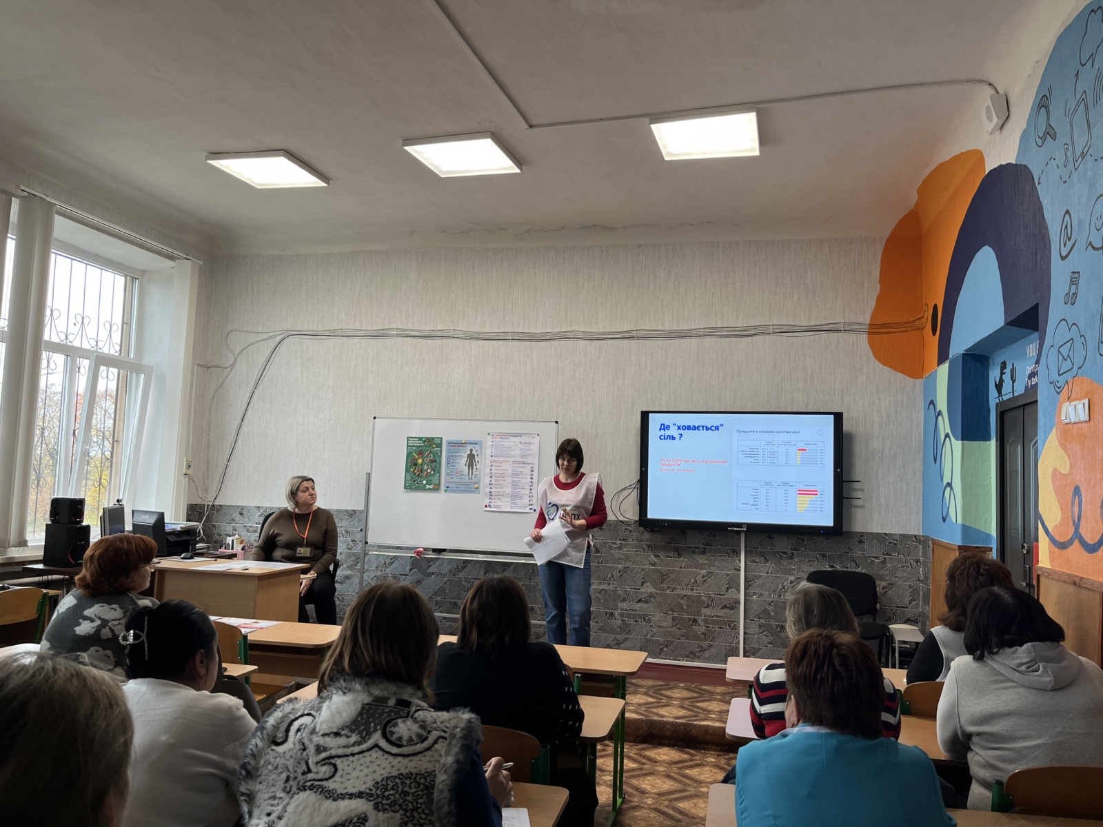 Окрему увагу приділили впливу надлишку солі на серцево-судинну систему та важливості поступового переходу до здорового харчування. Також обговорили профілактику неінфекційних захворювань через правильне збалансоване харчування відповідно до принципів «Тарілки здорового харчування».