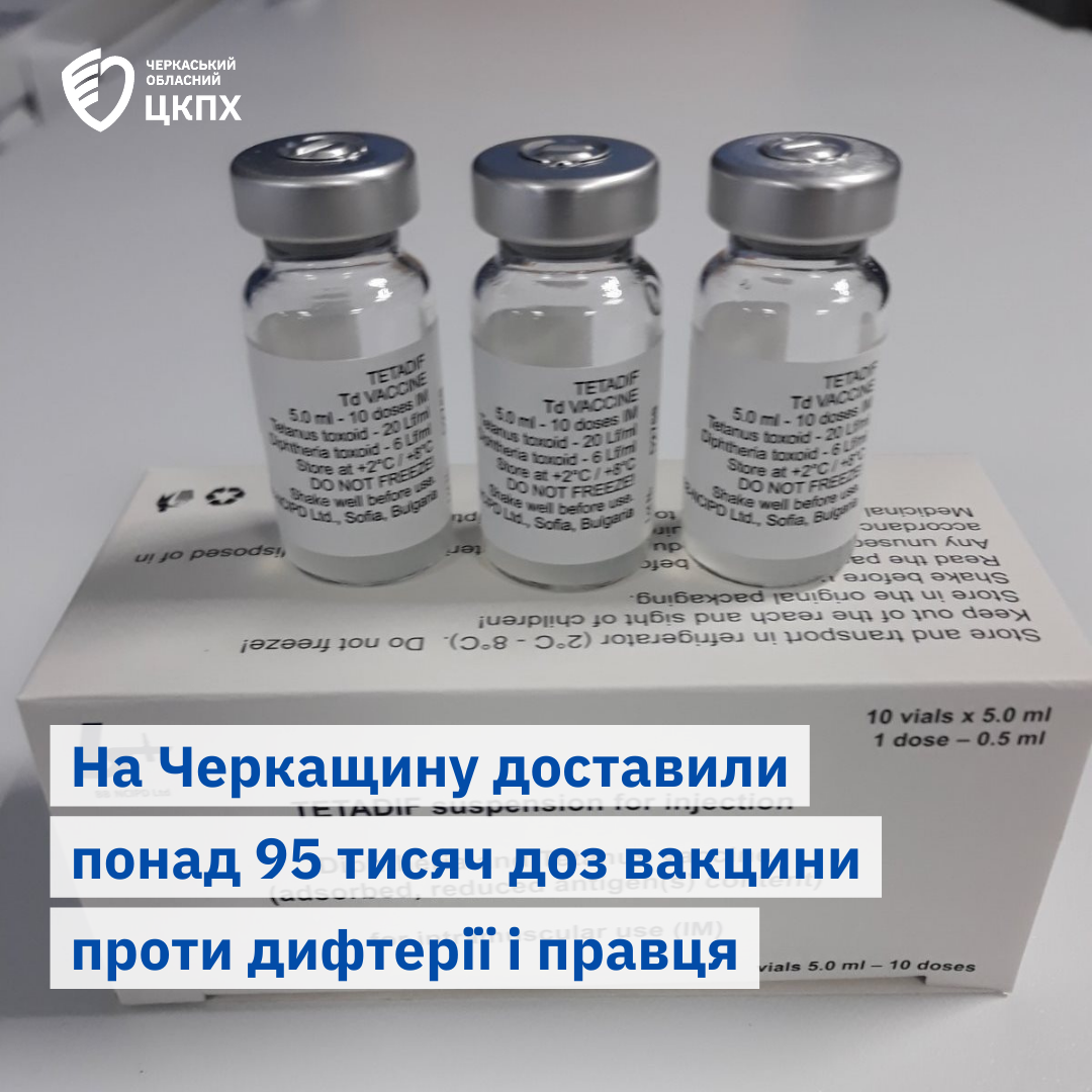 На Черкащину доставили понад 95 тисяч доз вакцини проти дифтерії і правця