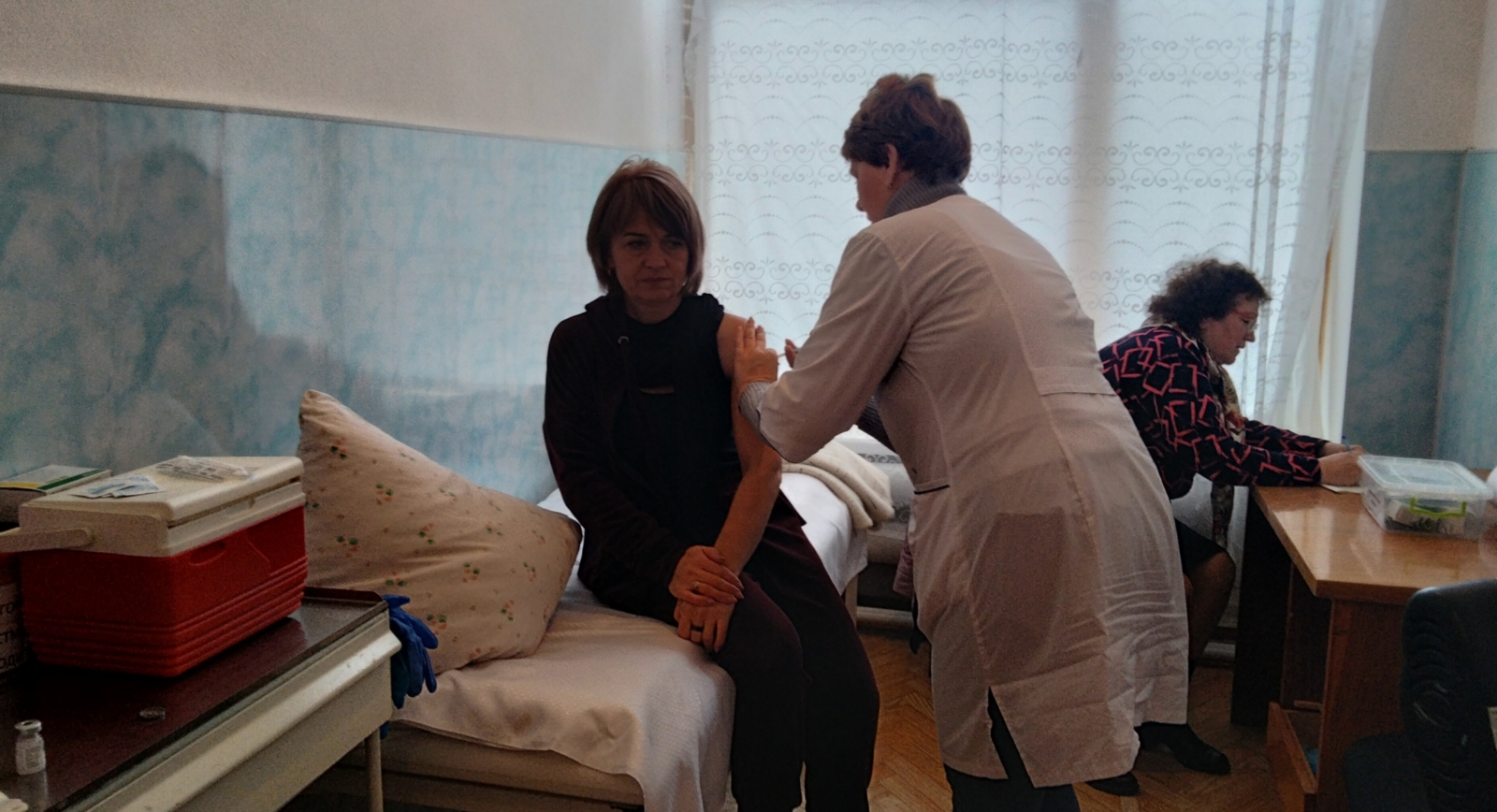 У межах виїзної акції в.о. завідувача Наталія Бондаренко, помічники лікаря епідеміолога Надія Малига та Світлана Захарченко із вакцинатором первинки Оленою Соколовою також для щеплення вдома відвідали не спроможних самостійно пересуватися літніх людей.