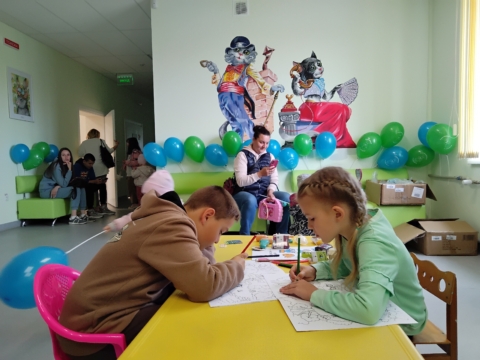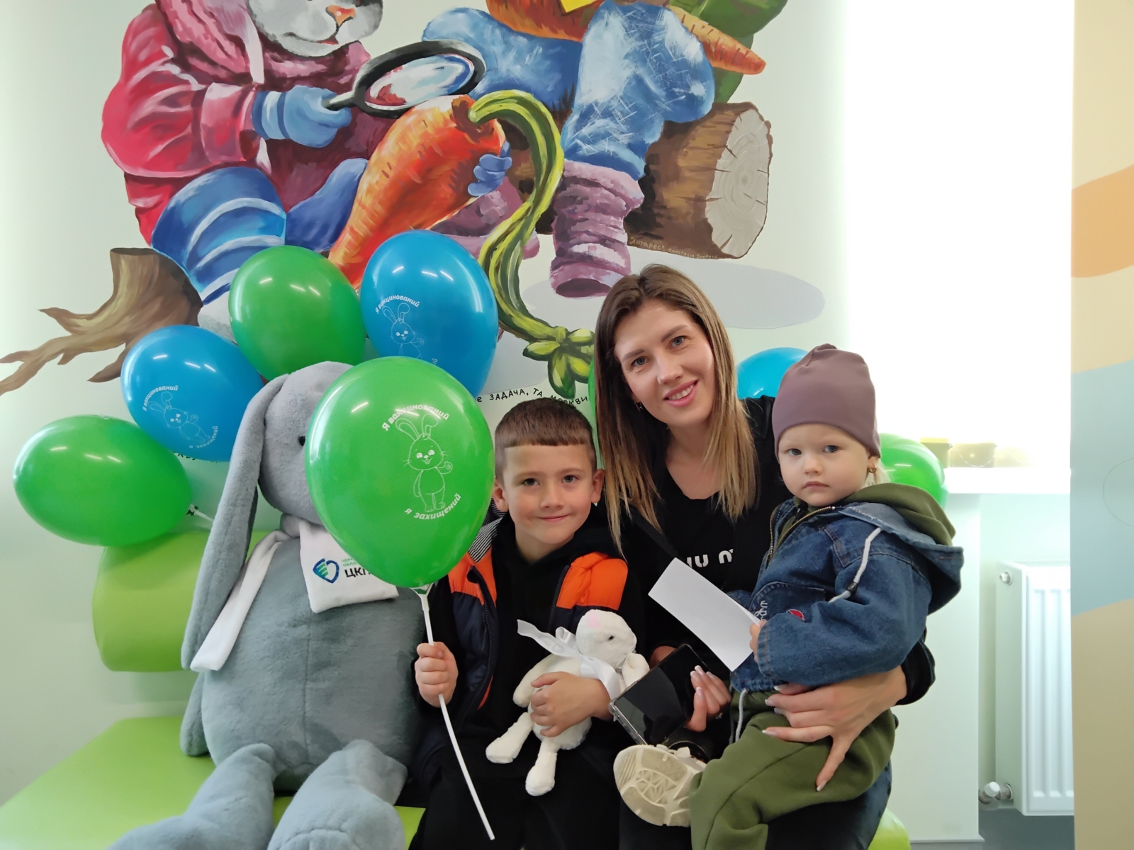 На «острівці здоров’я» на маленьких відвідувачів також очікували тематична фотозона, ігри, розмальовки та подарунки – брендовані кульки, іграшки Зайчик-Лапчик і термокружки зі слоганом «Я вакцинований – я захищений».