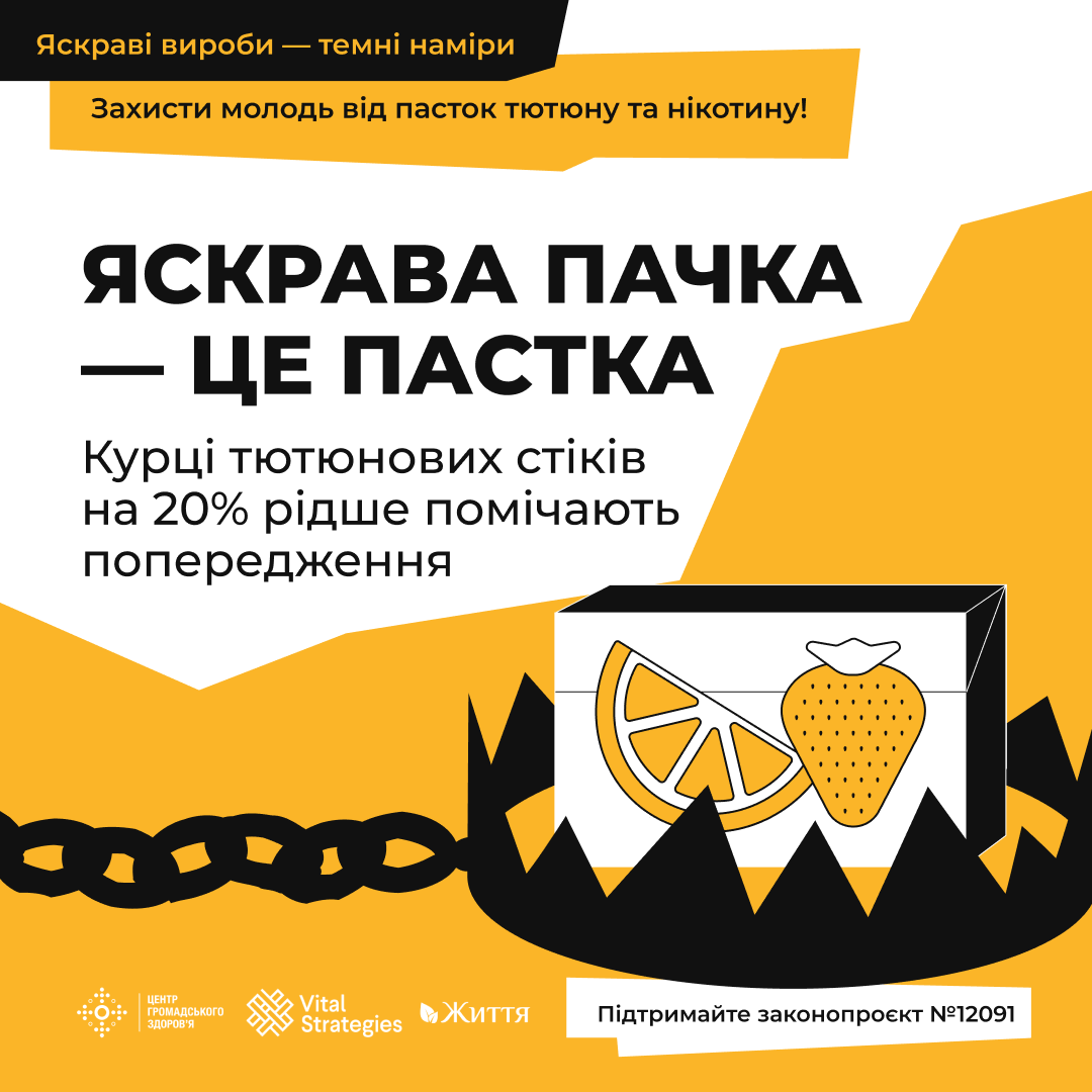 🧾 Законопроєкт №12091 пропонує впровадити на упаковках тютюнових стіків комбіновані медичні попередження — текст та графічне зображення на 65% площі.