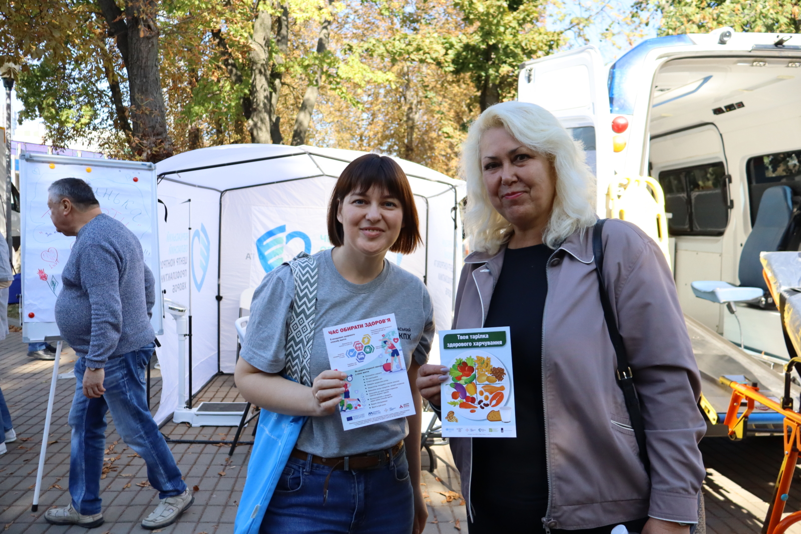 За допомогою фахівців відділу епіднагляду та профілактики неінфекційних захворювань охочі могли виміряти тиск, дізнатись свої вагу та зріст, отримати консультації щодо індексу маси тіла, формування раціону відповідно до «Тарілки здорового харчування», профілактики найпоширеніших серед українців неінфекційних недуг.