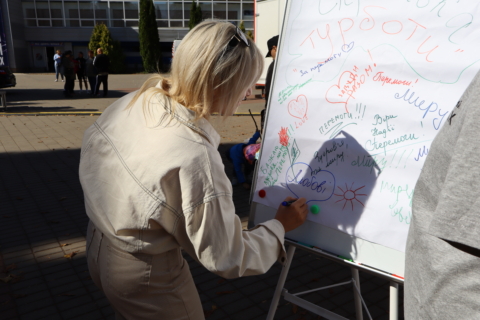 Із психологинею відвідувачі вчилися долати тривогу й піклуватися про себе: кожен міг витягнути й розшифрувати послання з «Кошику сенсів» та лишити свою мрію на фліпчарті «Скринька турбот».