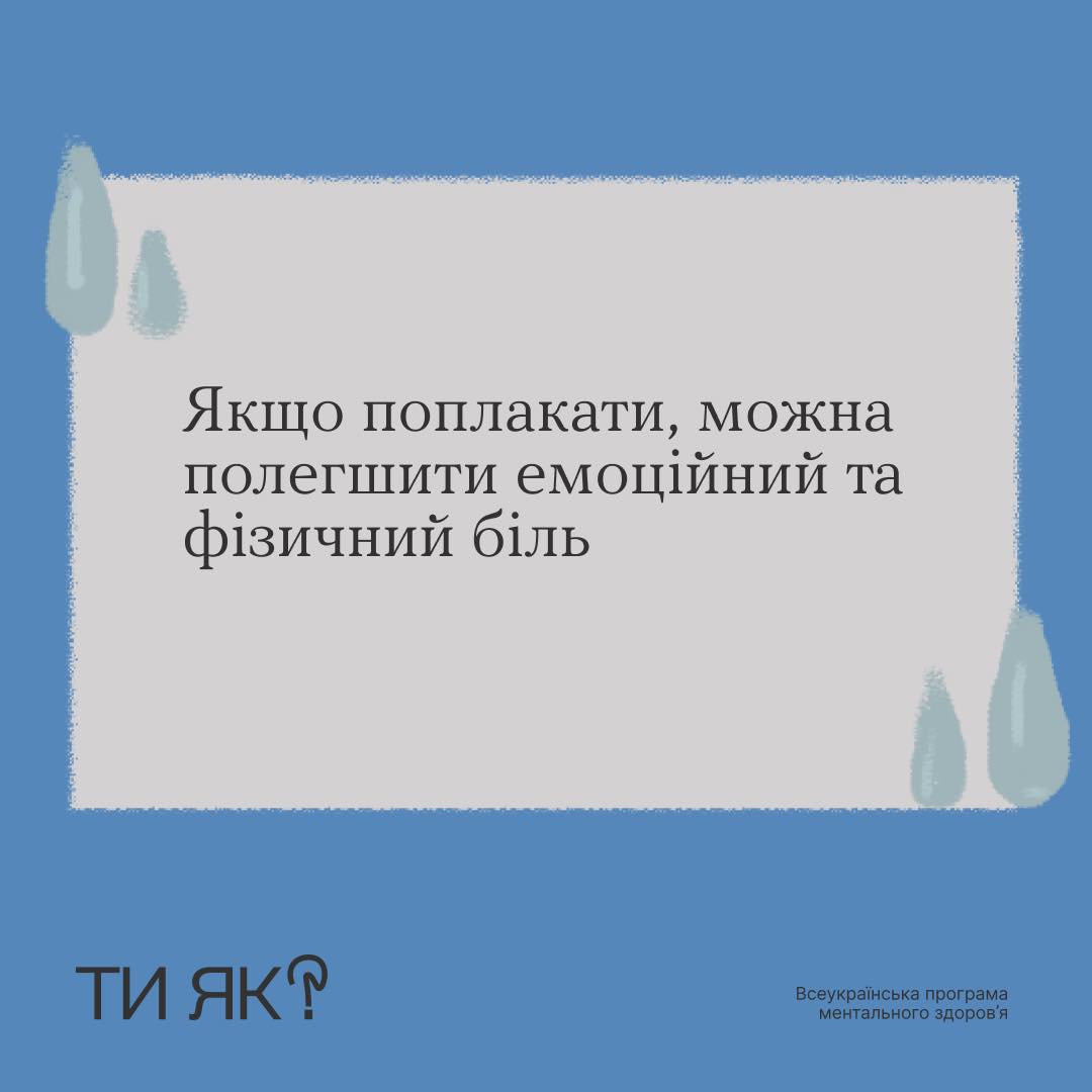Просто щоб ще раз уточнити: сльози не є виявом слабкості, а поплакати — це ок.