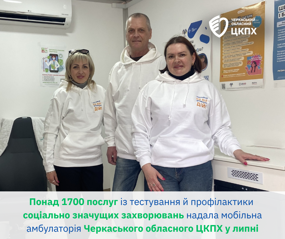 Понад 1700 послуг із тестування й профілактики соціально значущих захворювань надала мобільна амбулаторія Черкаського обласного ЦКПХ у липні