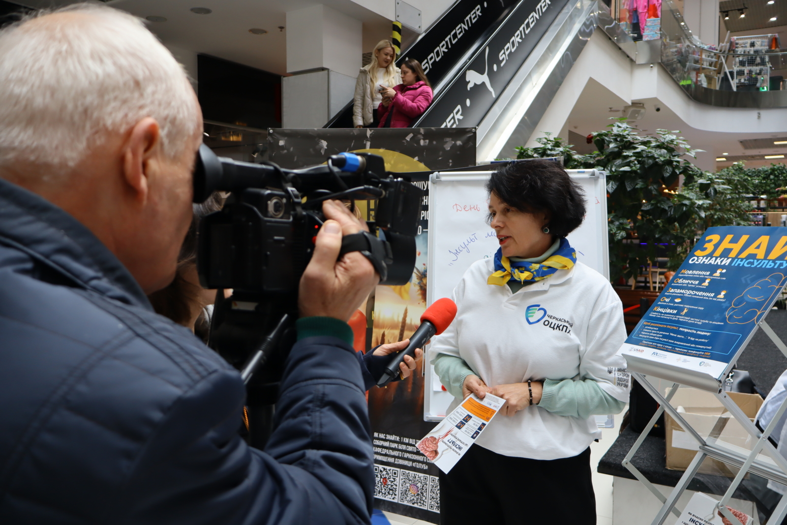 У Всесвітній день боротьби з інсультом фахівці Черкаського обласного центру контролю та профілактики хвороб завітали до одного з торговельно-розважальних центрів міста. Лікарі та психологиня Центру спілкувалися з відвідувачами про перші ознаки інсульту, важливість швидкої реакції та профілактику захворювання.