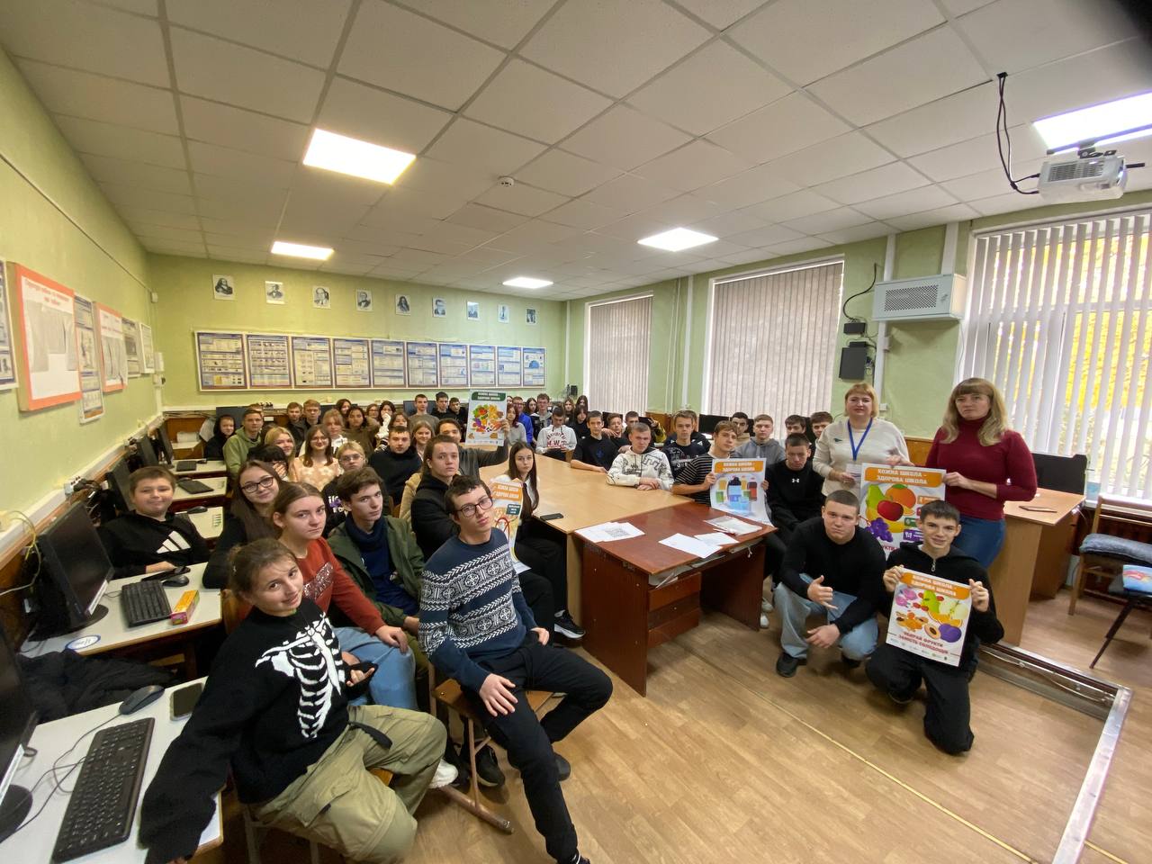 Слухачі лекції отримали наглядові матеріали на тему «Тарілка здорового харчування», «Обирай питну воду», «Кожна школа – здорова школа» та пройшли опитування за допомогою QR-коду.