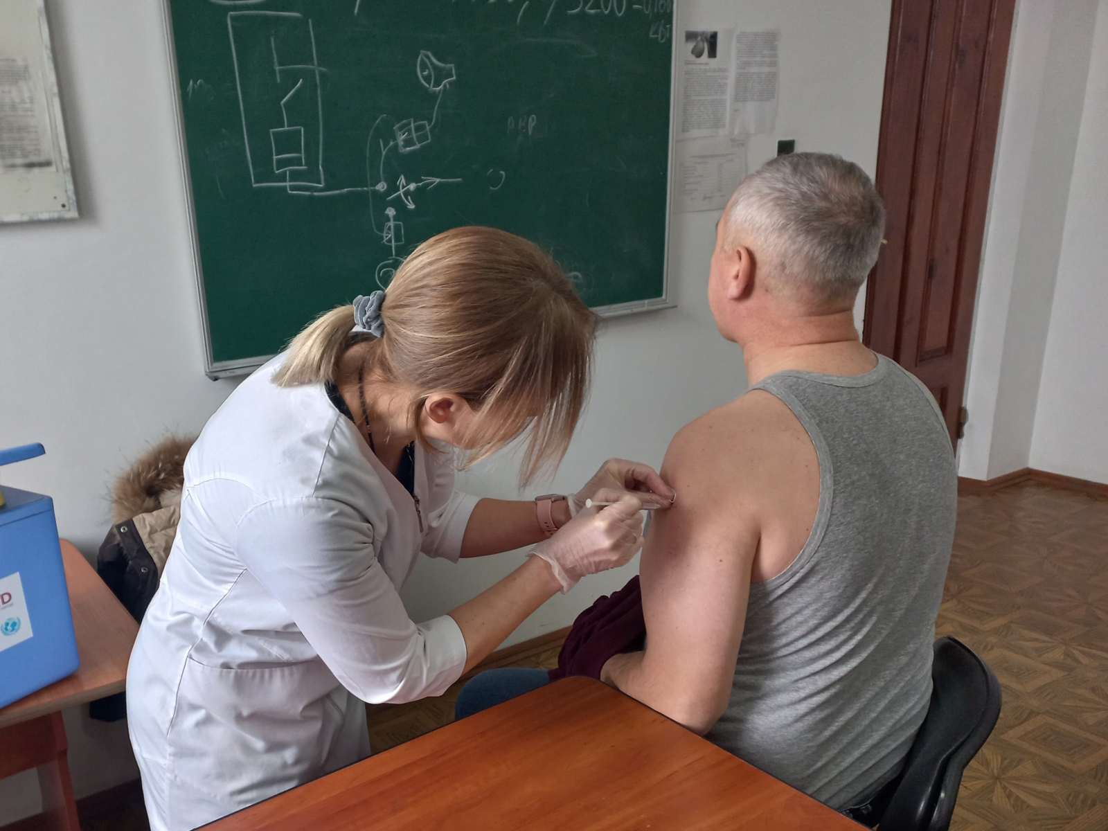 Згодом працівники підприємства пройшли медичний огляд і отримали дозу вакцини. Помічниця лікаря-епідеміолога Світлана Майборода провела індивідуальні бесіди з вакцинованими, допомагала в анкетуванні та роздавала друковані матеріали для поглиблення знань про здоров’я.